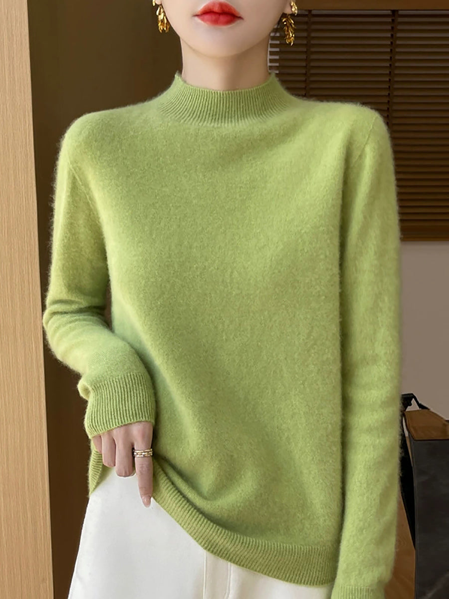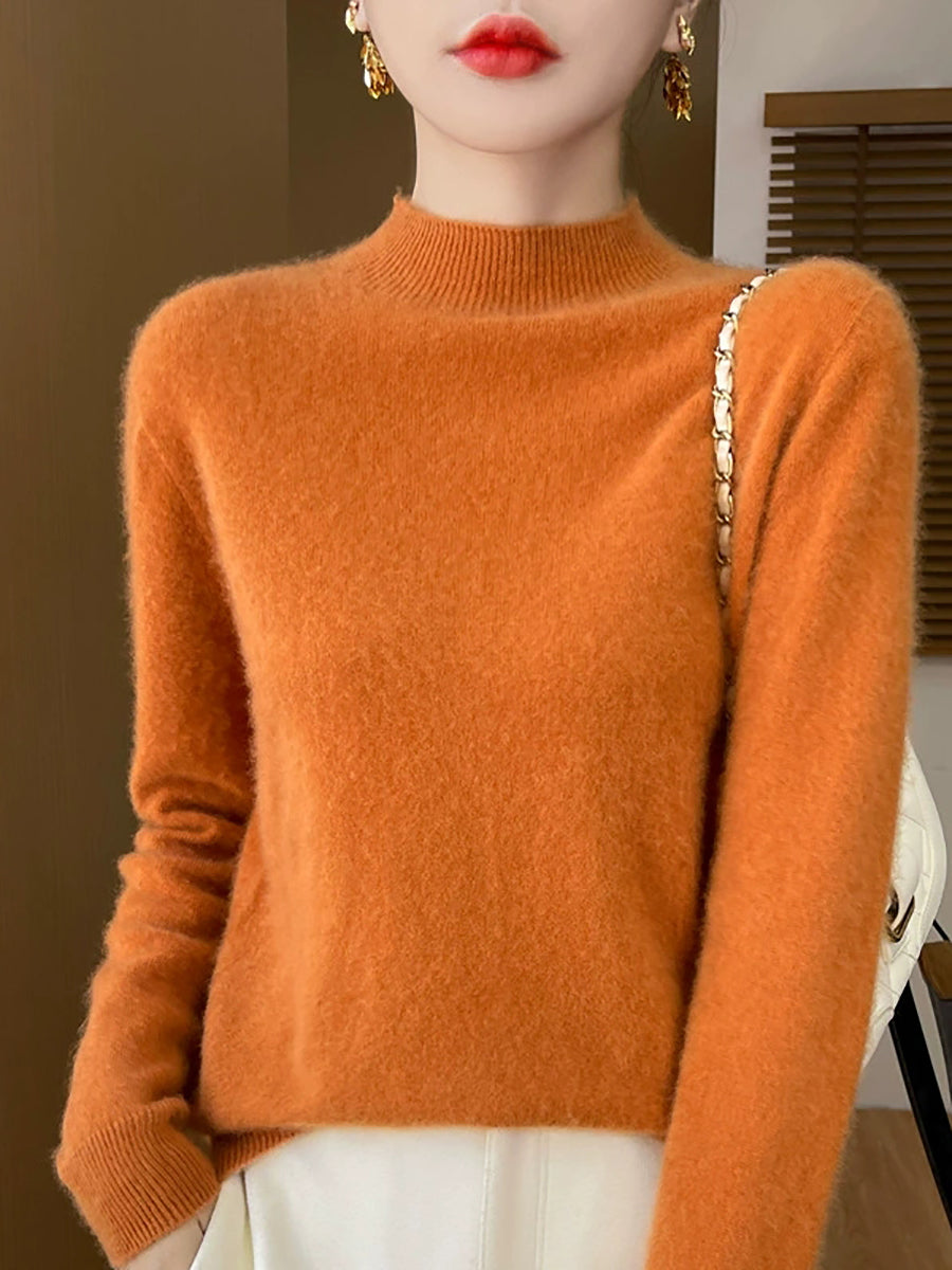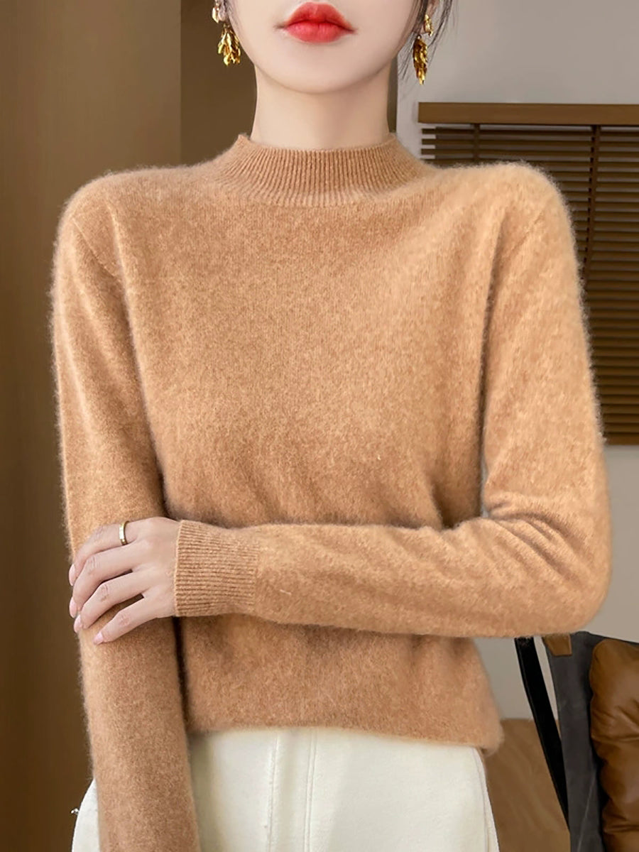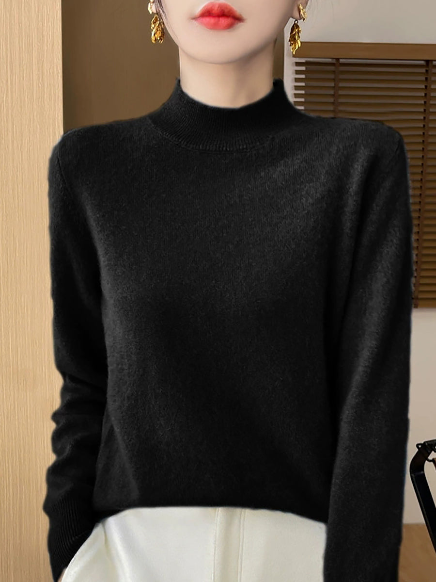Kvinder Efterår Casual Ren Farve Halv-Turtleneck Sweater
