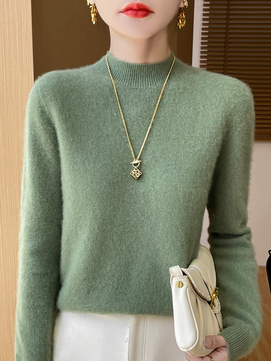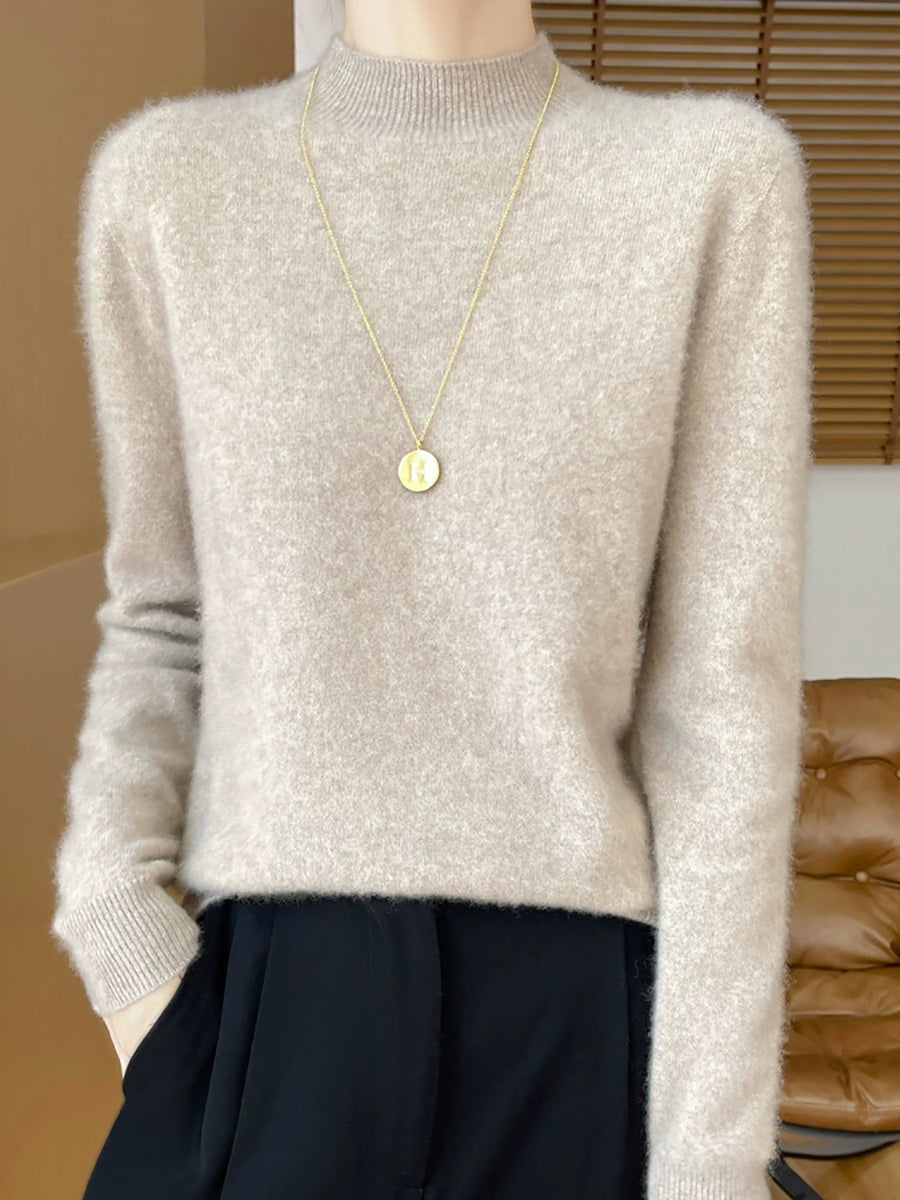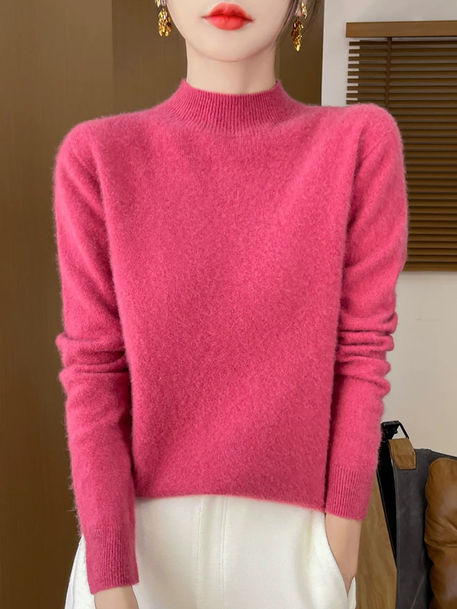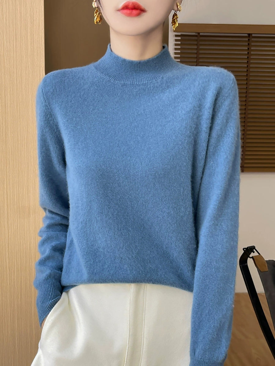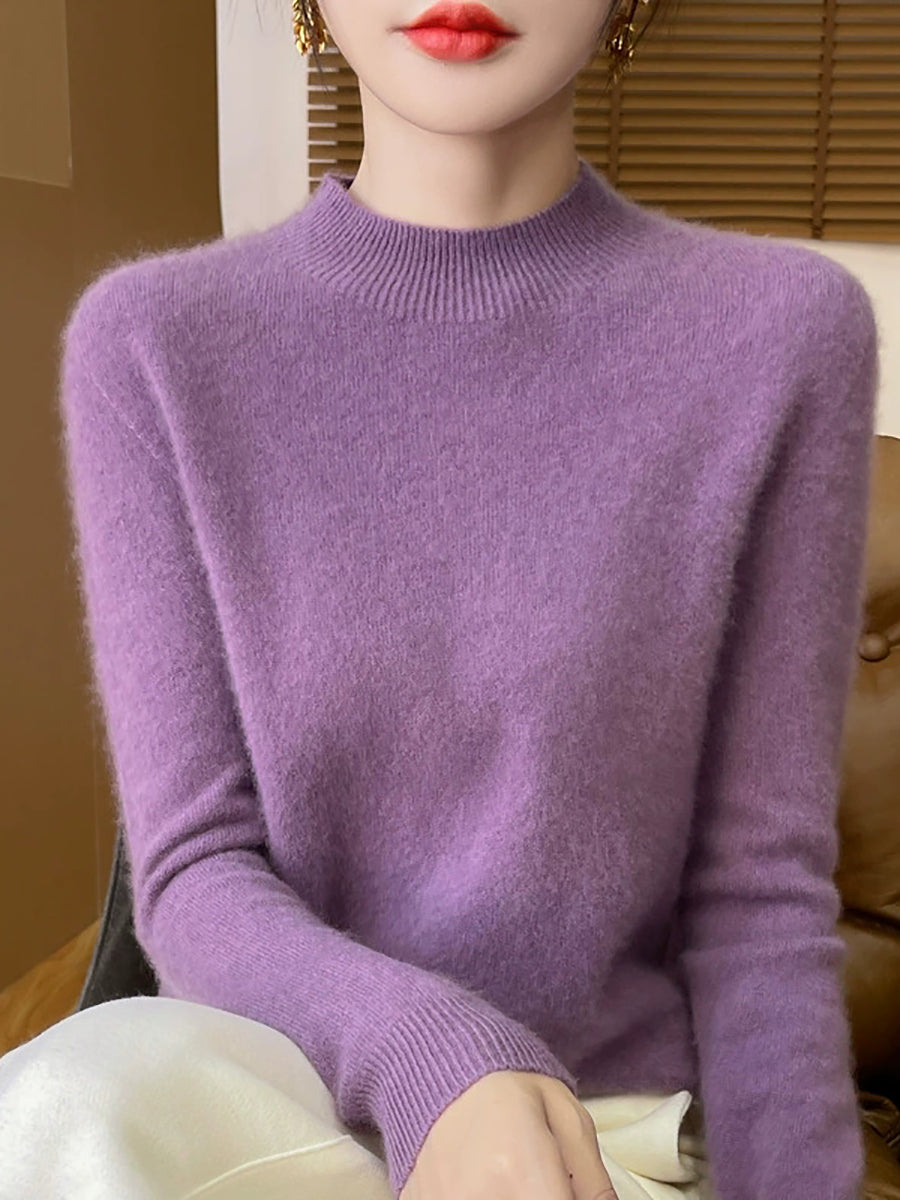 Kvinder Efterår Casual Ren Farve Halv-Turtleneck Sweater