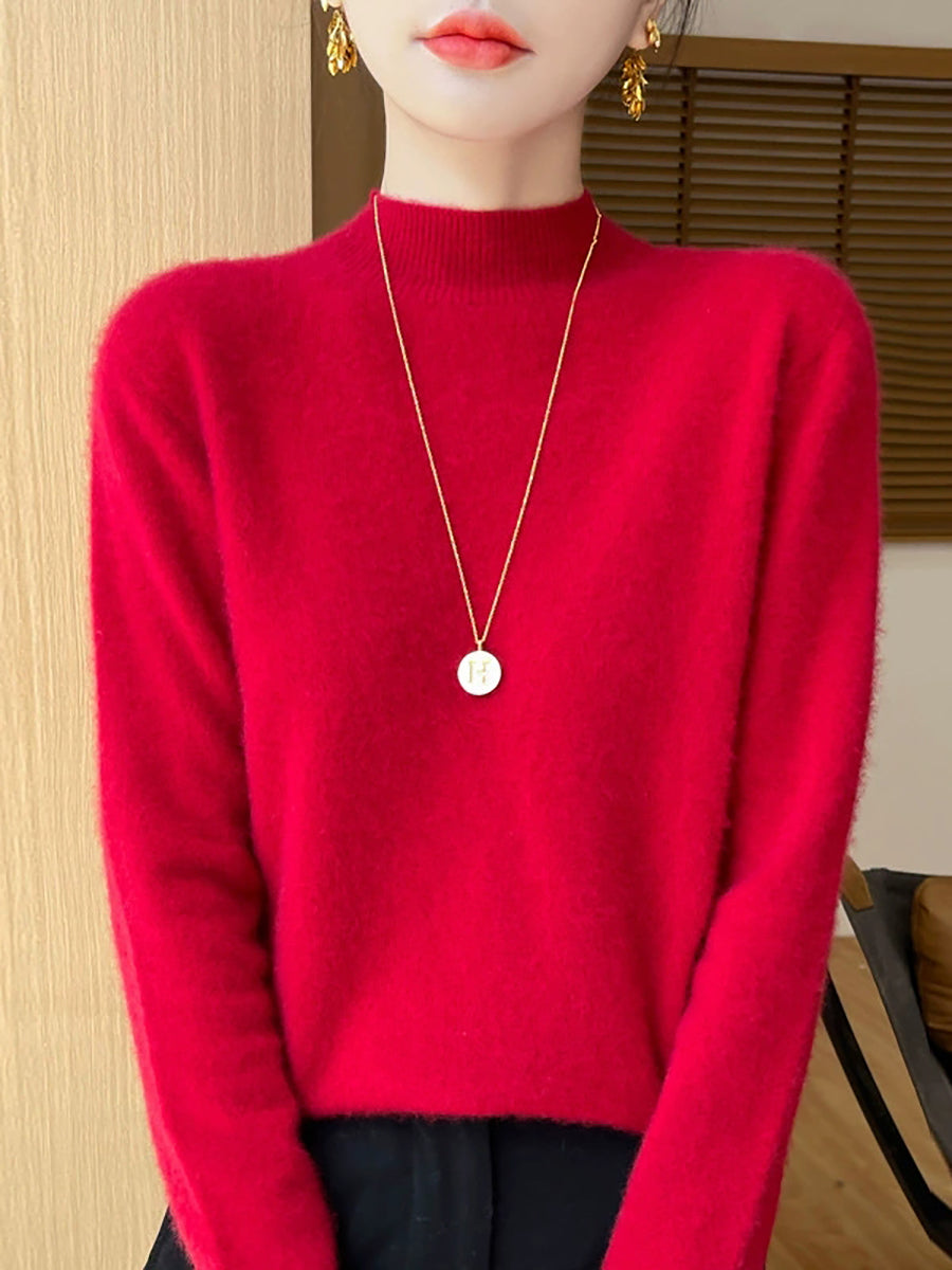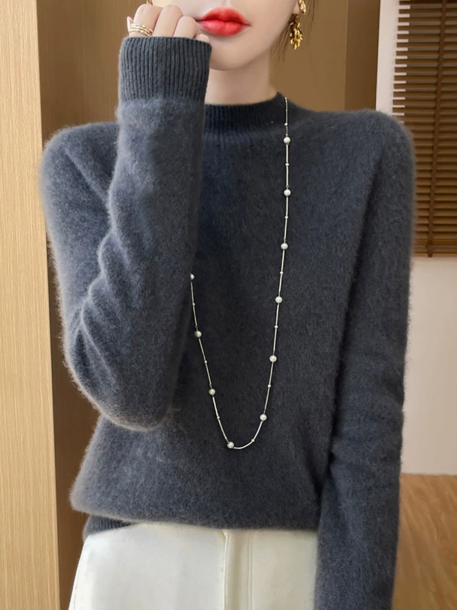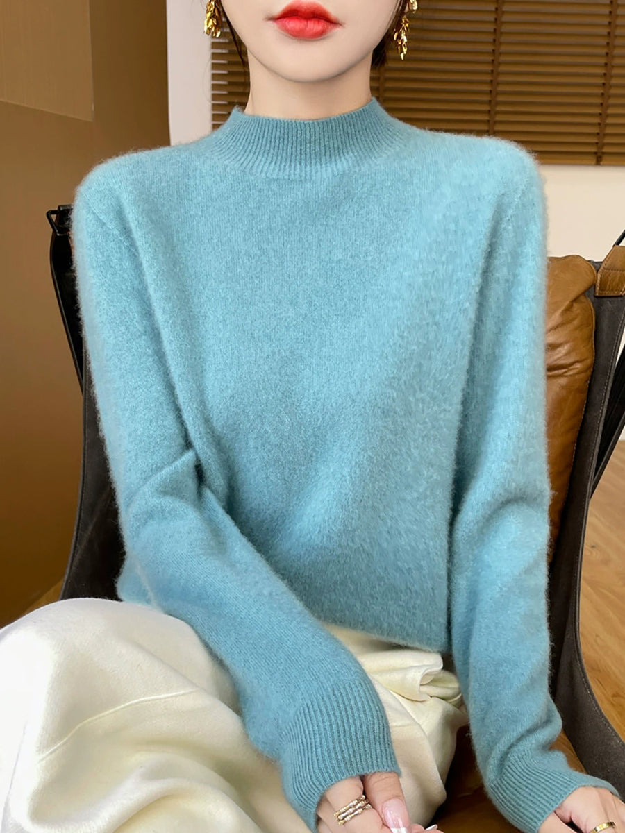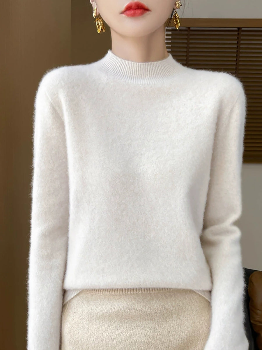 Kvinder Efterår Casual Ren Farve Halv-Turtleneck Sweater