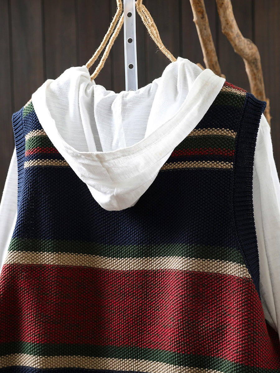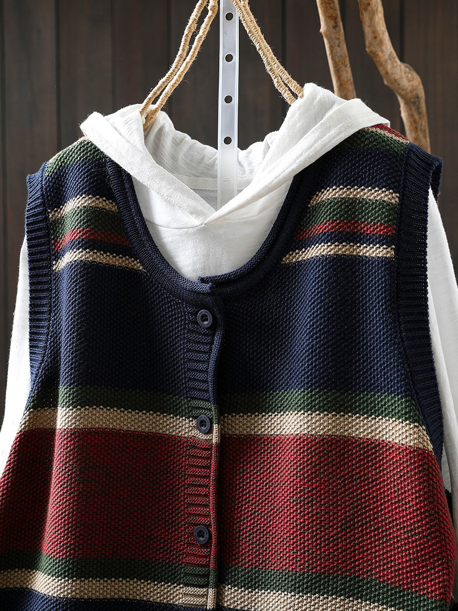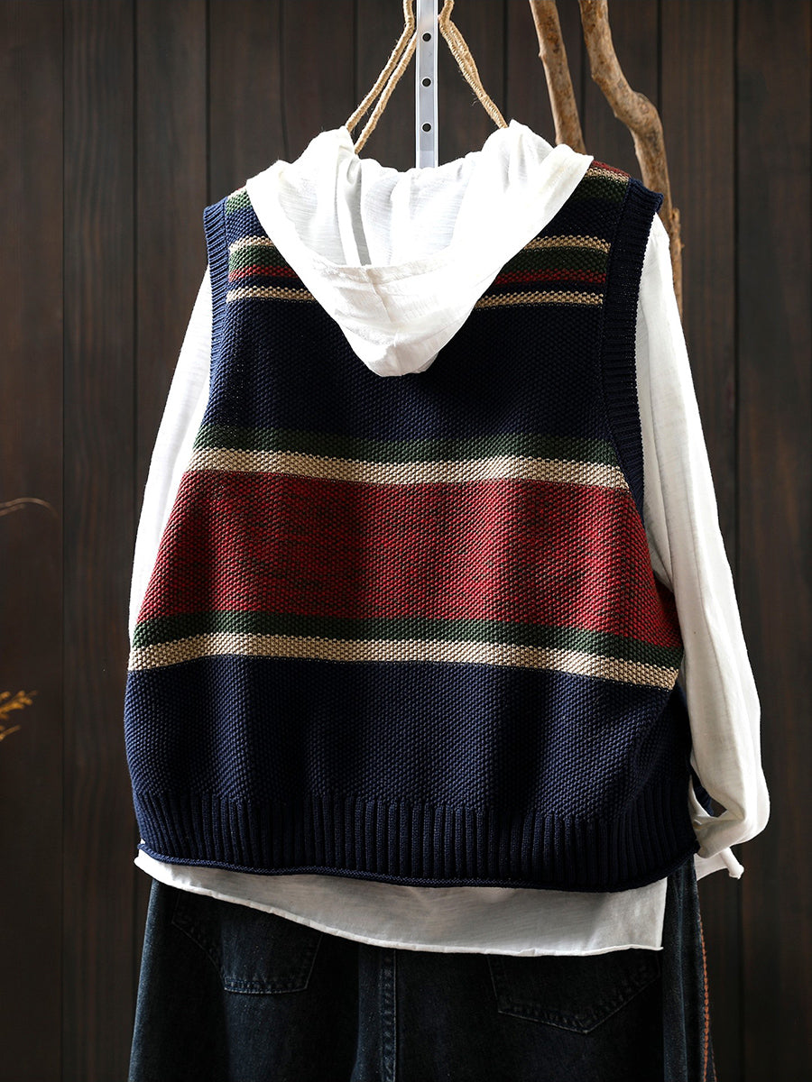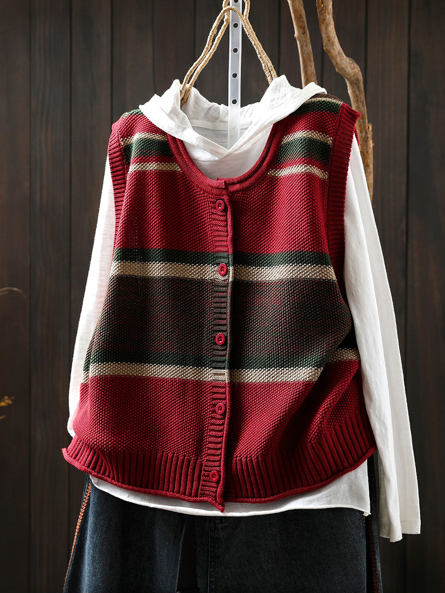 Kunstnerisk strikket vest med farveblok og O-hals til kvinder