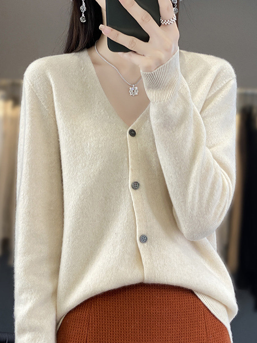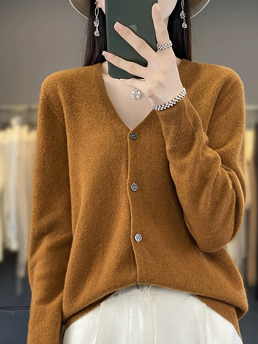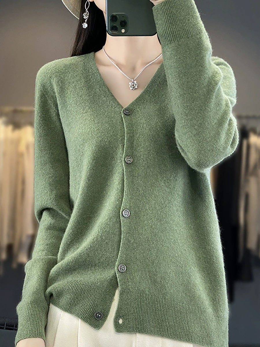 Kvinder Forårskunstnerisk Ren Farve V-hals Cardigan