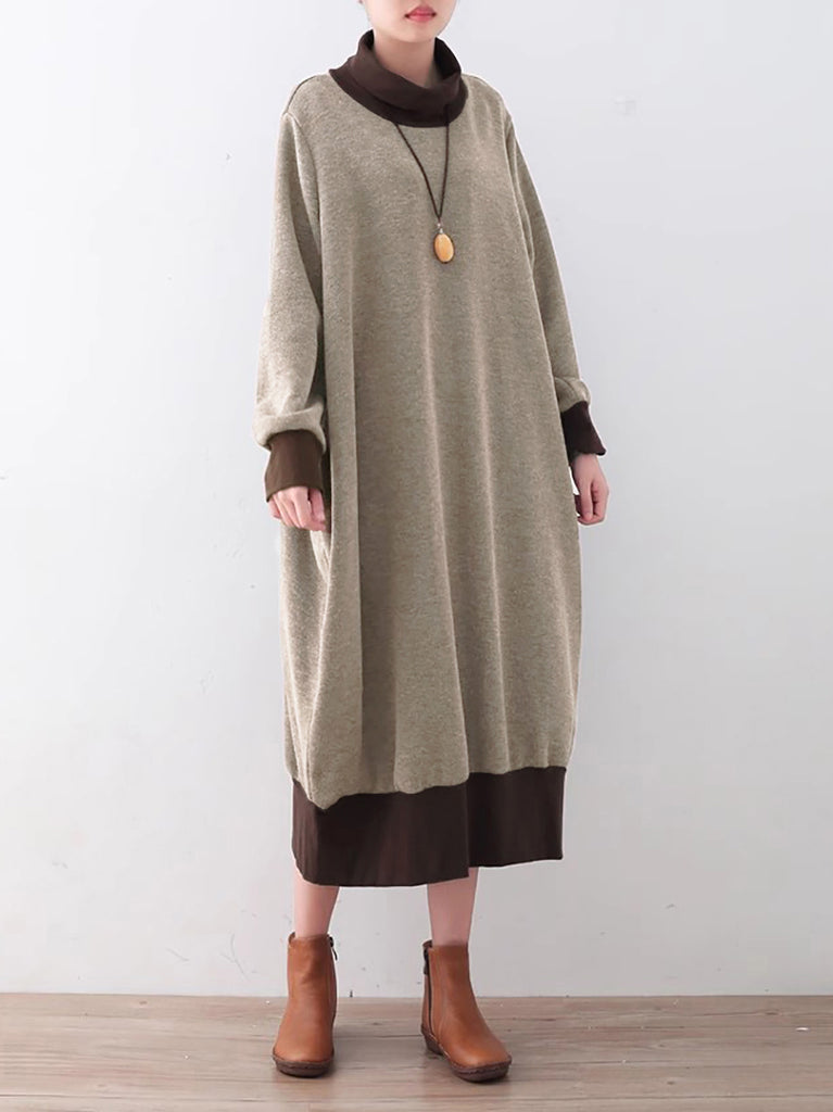 Plus Size Kvinder Autumn Stripe Turtleneck Bomuldskjole