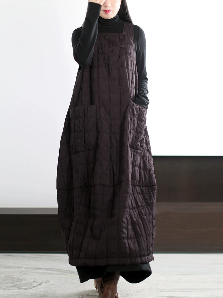 Kvinder Sommer Artsy Plaid Løs Denim Vest Kjole