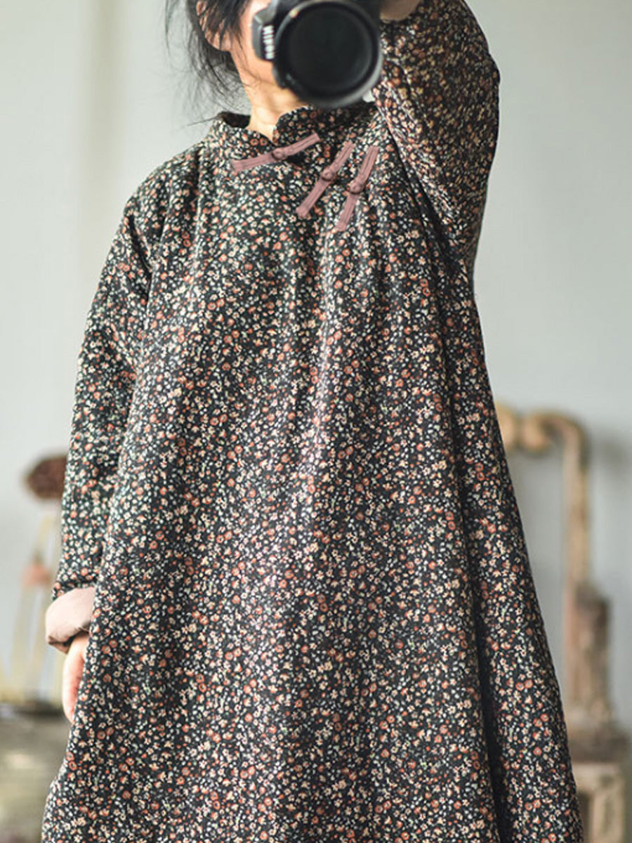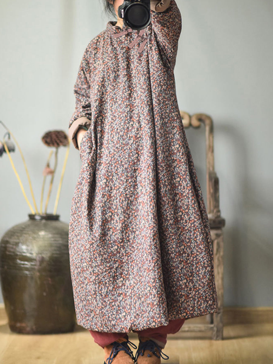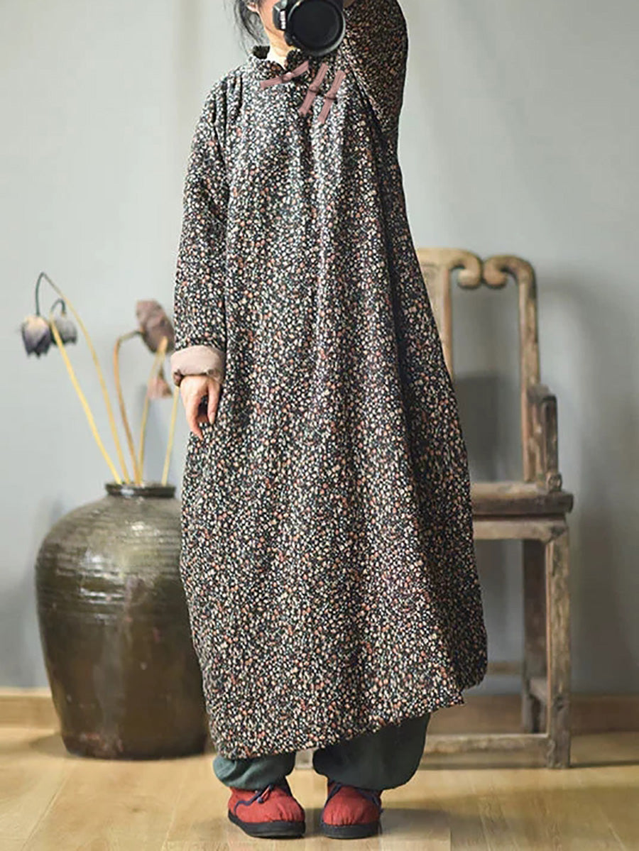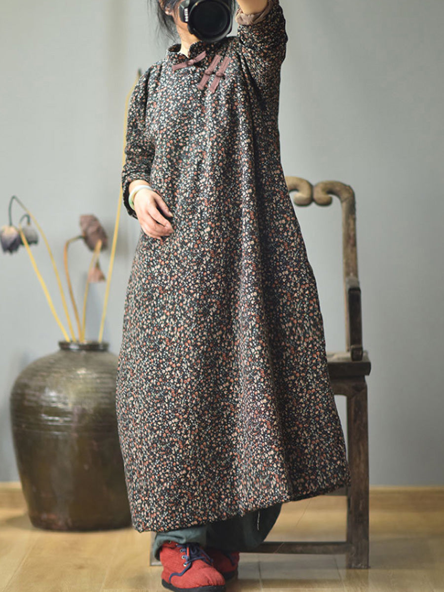 Plus Size - Efterår Kvinder Loose Floral Bomuldskjole