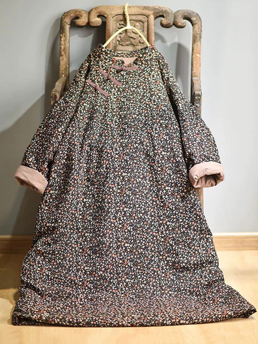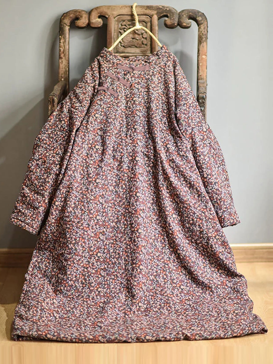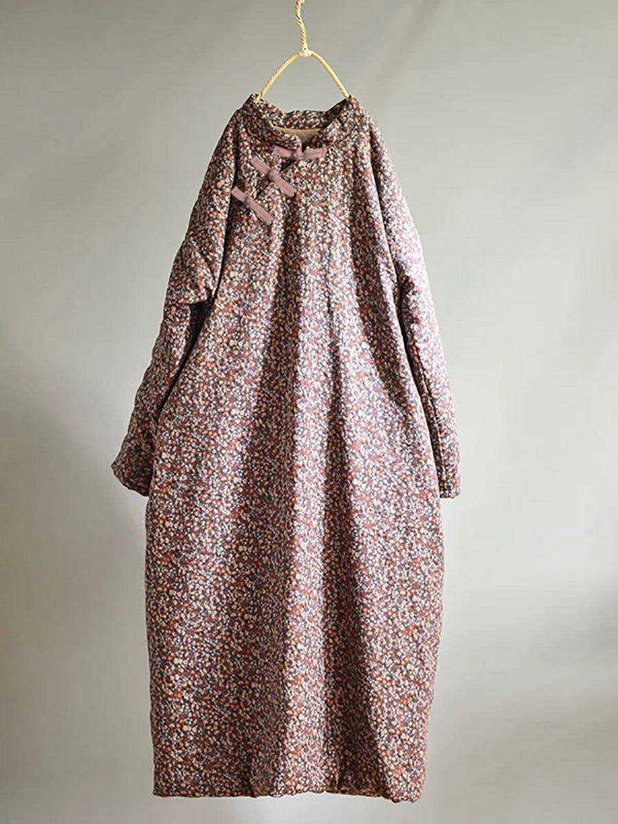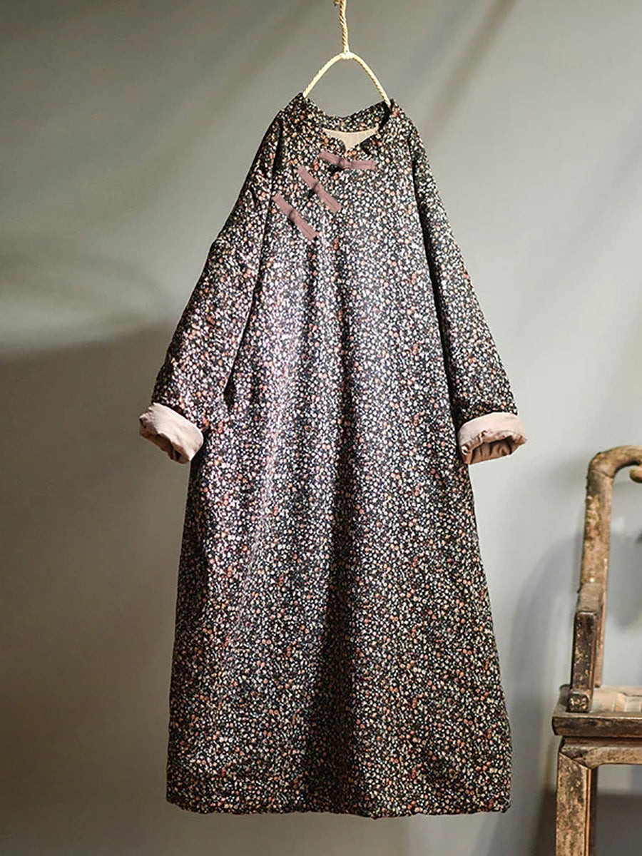 Plus Size - Efterår Kvinder Loose Floral Bomuldskjole