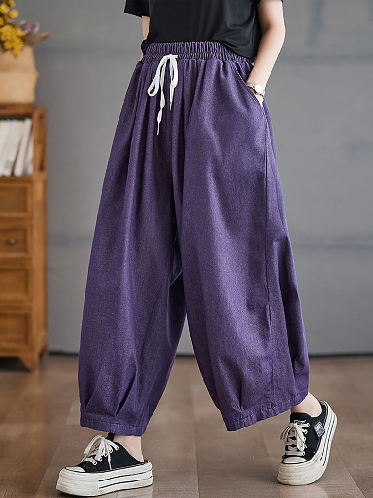 Kvinder Sommer Casual Ren Farve Bomuld Harem Bukser