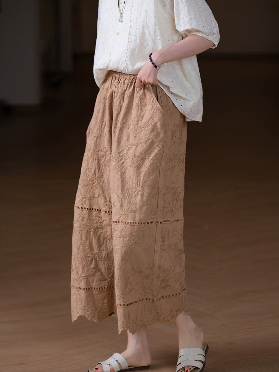 Kvinder Sommer Retro Broderi 100% Bomuld Lige Bukser