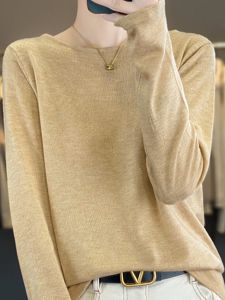 Kvinder Efterår Casual O-hals Strikket Uldtrøje