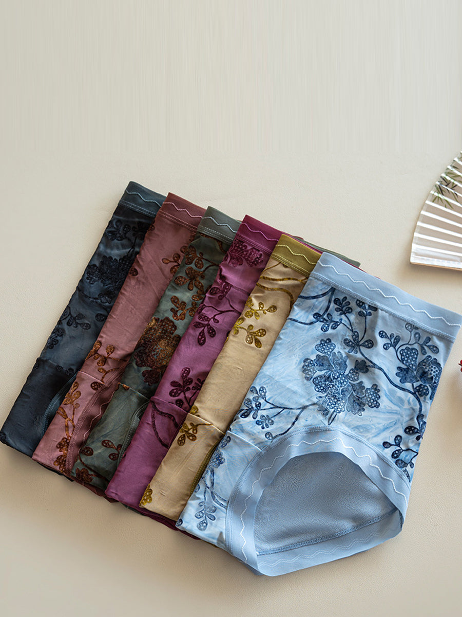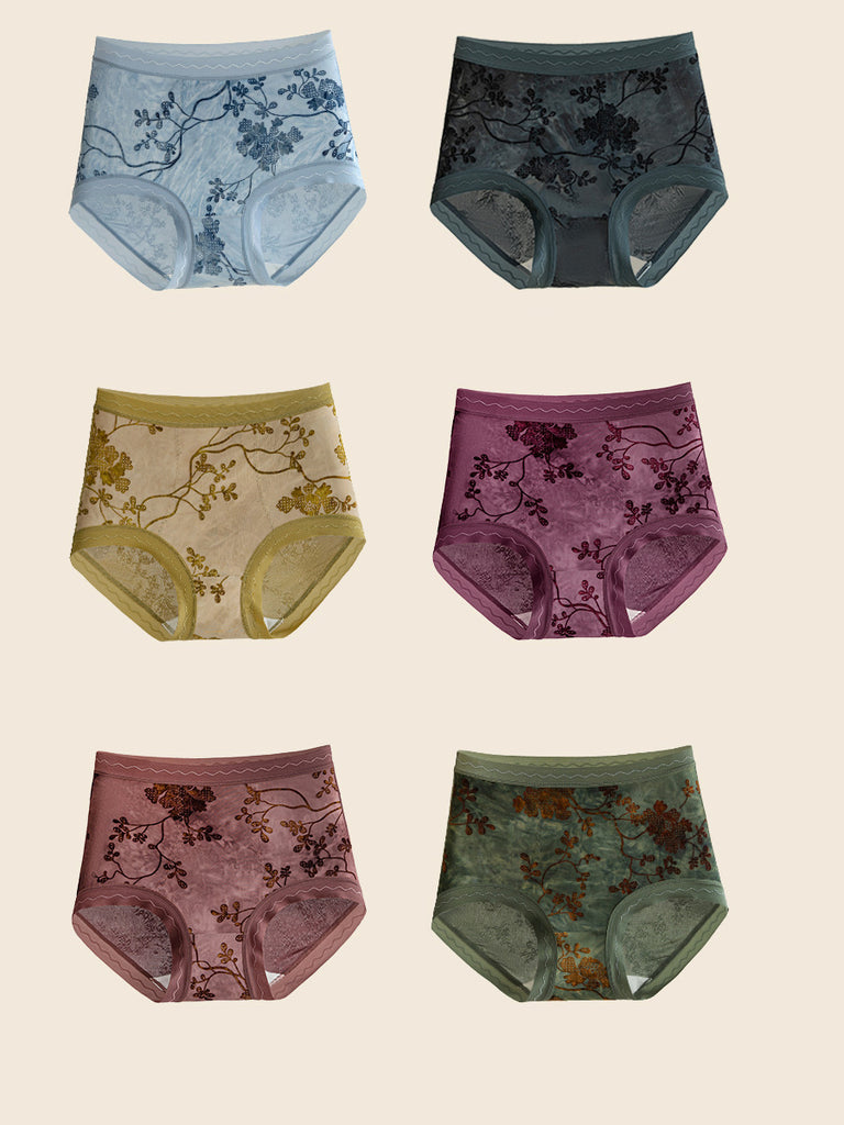 6 stykker dameundertøj med høj talje og blomsterjacquard