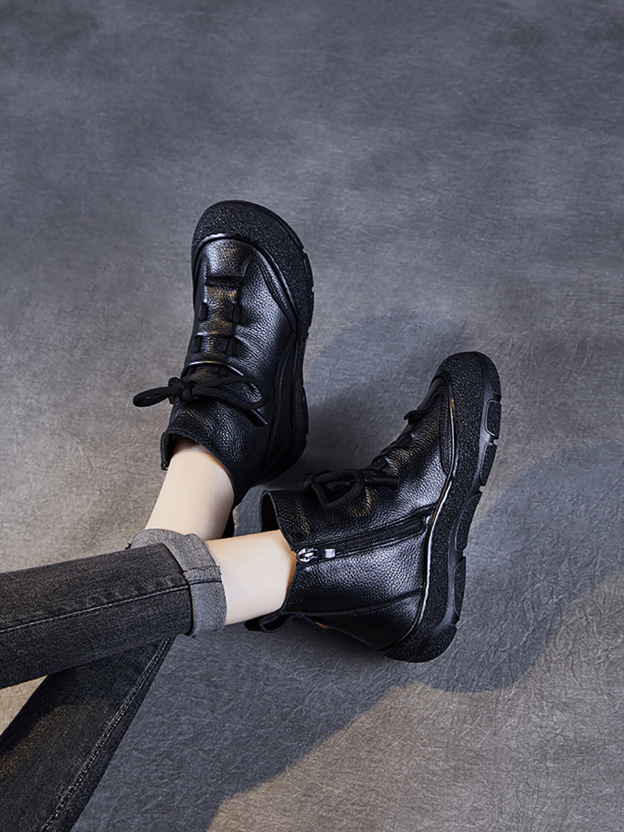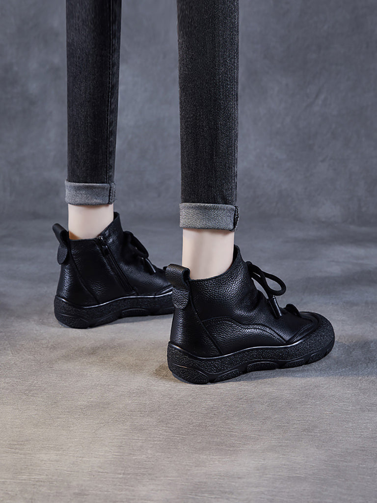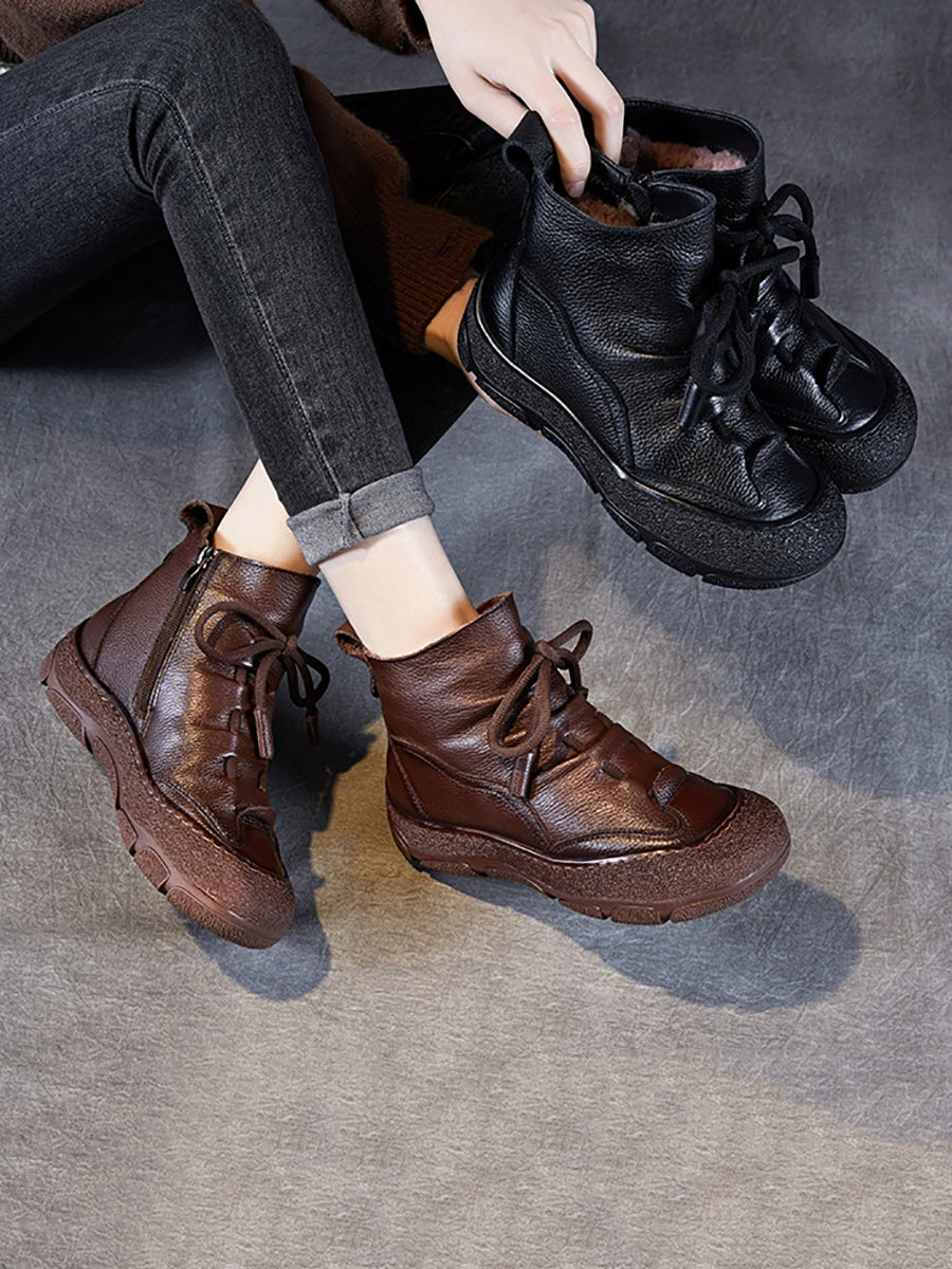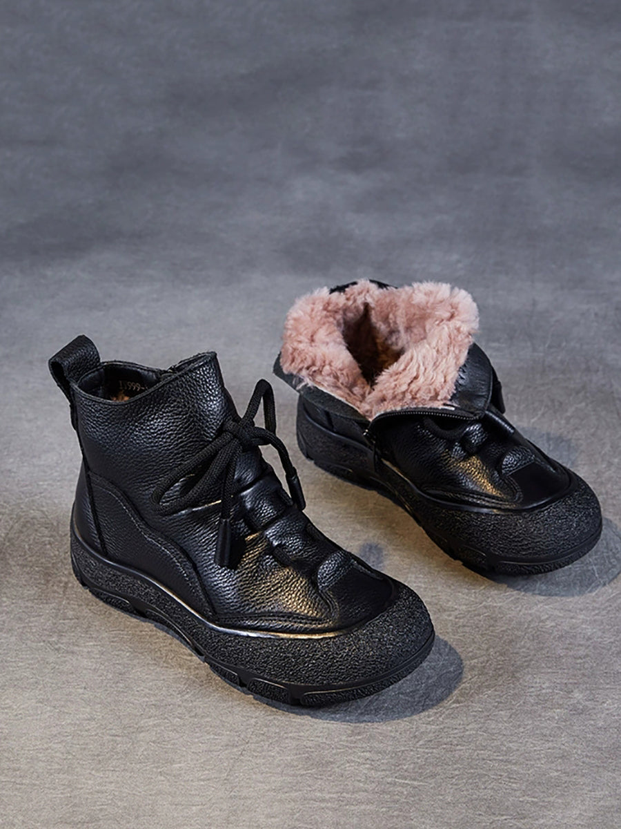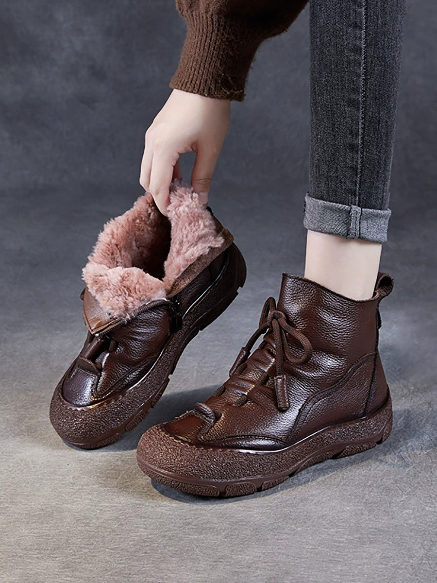 Kvinders vinterstøvler med fleecefor i ægte læder