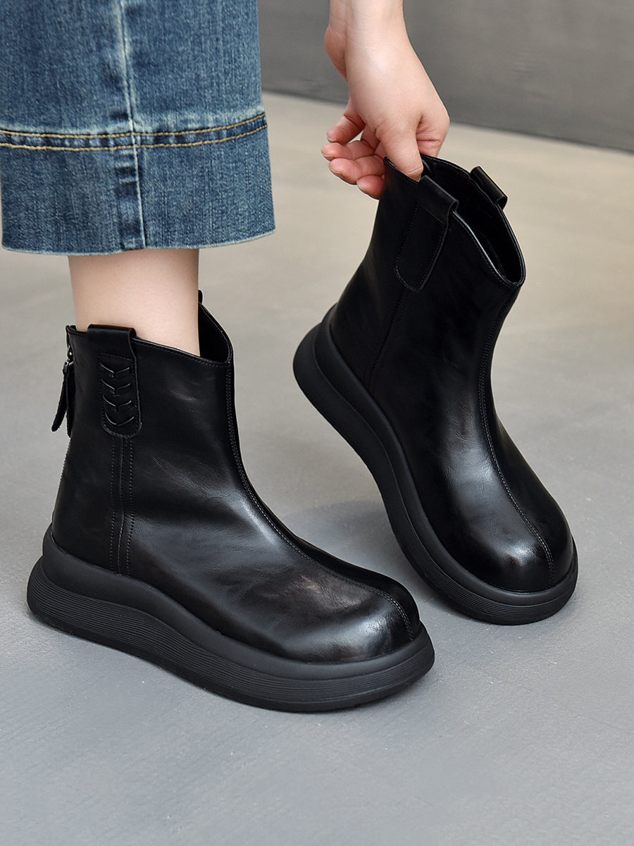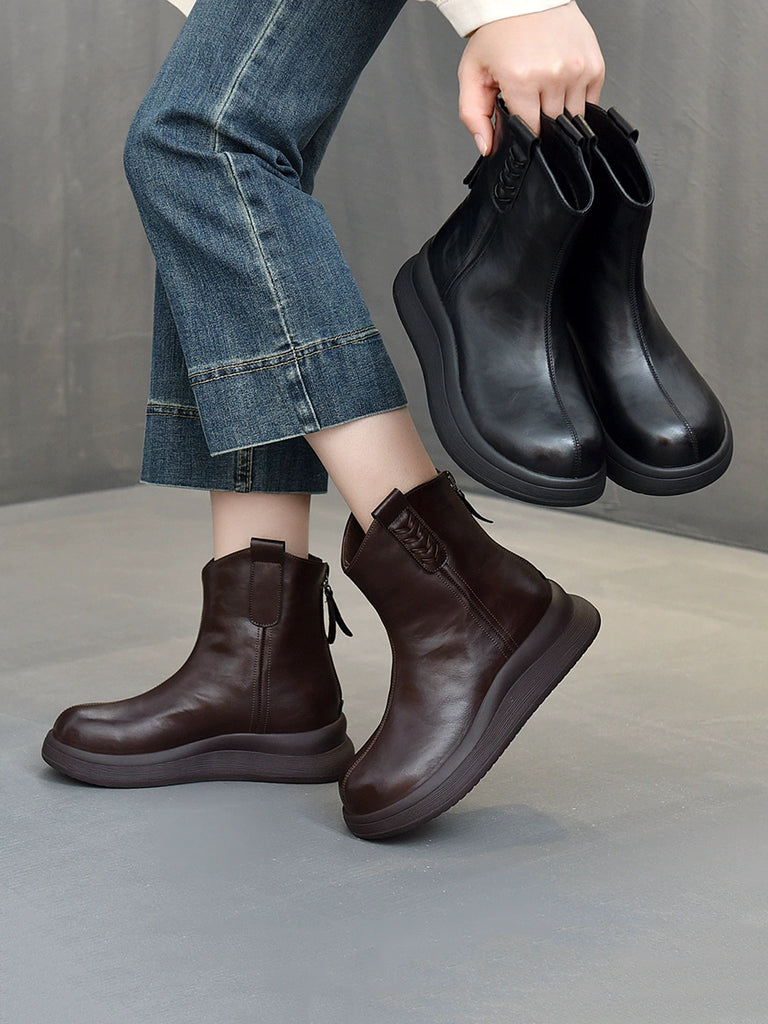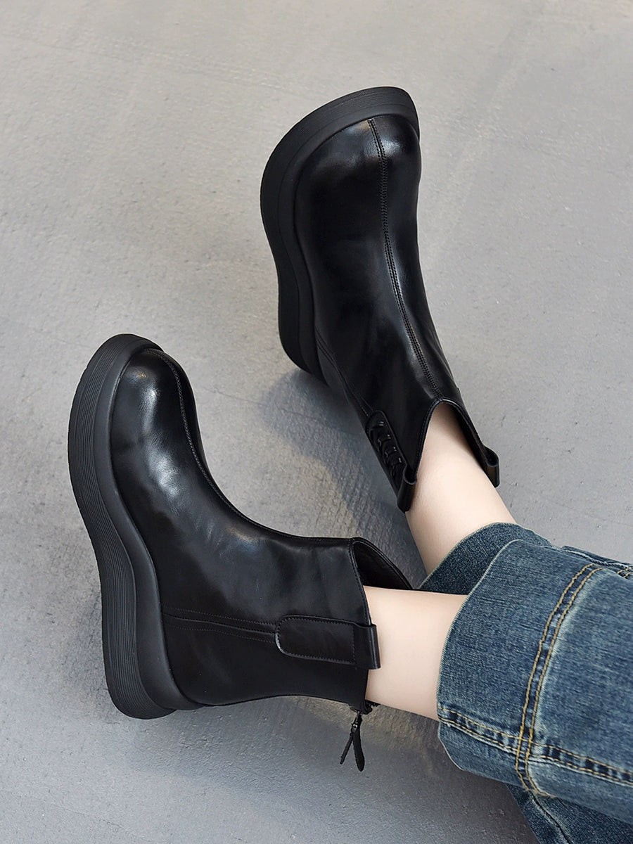 Kvinders vinterstøvler i ægte læder med platform