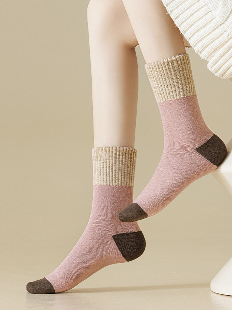 6 par tykke kunstneriske sokker med farveblok til kvinder