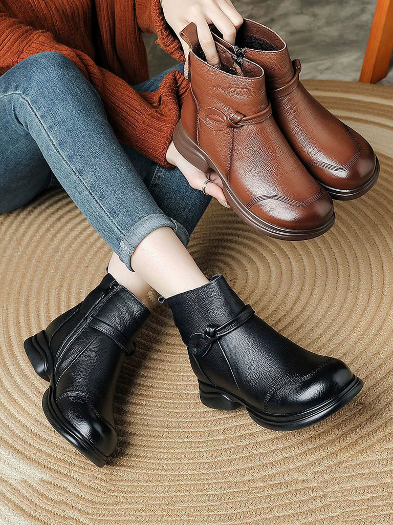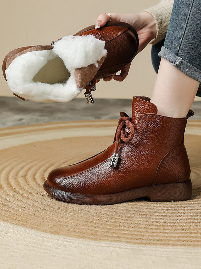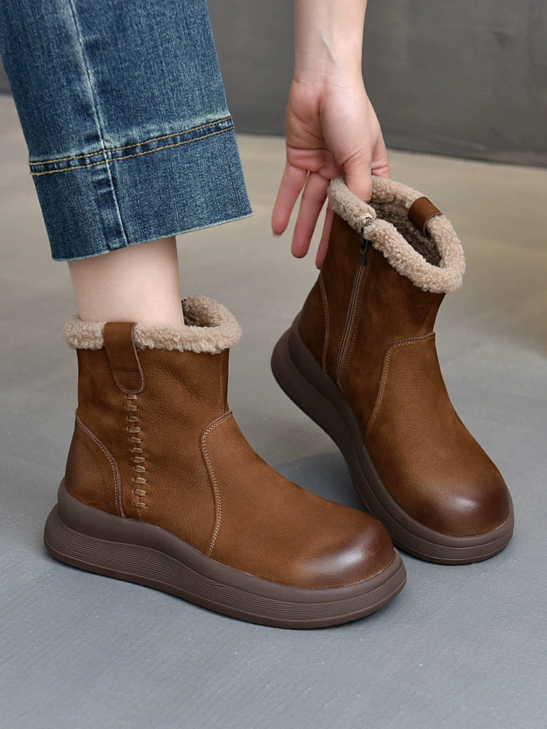 Kvinder Vinter Ankelstøvler i ægte læder med fleecefor