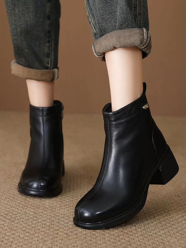 Kvinder Vinterstøvler i ægte læder med fleecefor og mellemhøj hæl