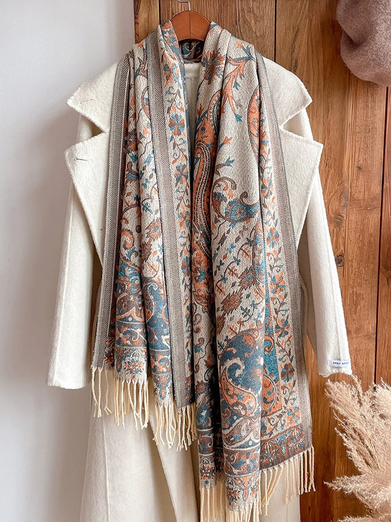 Kvinder Vinter Blomster Jacquard Kvast Sjal