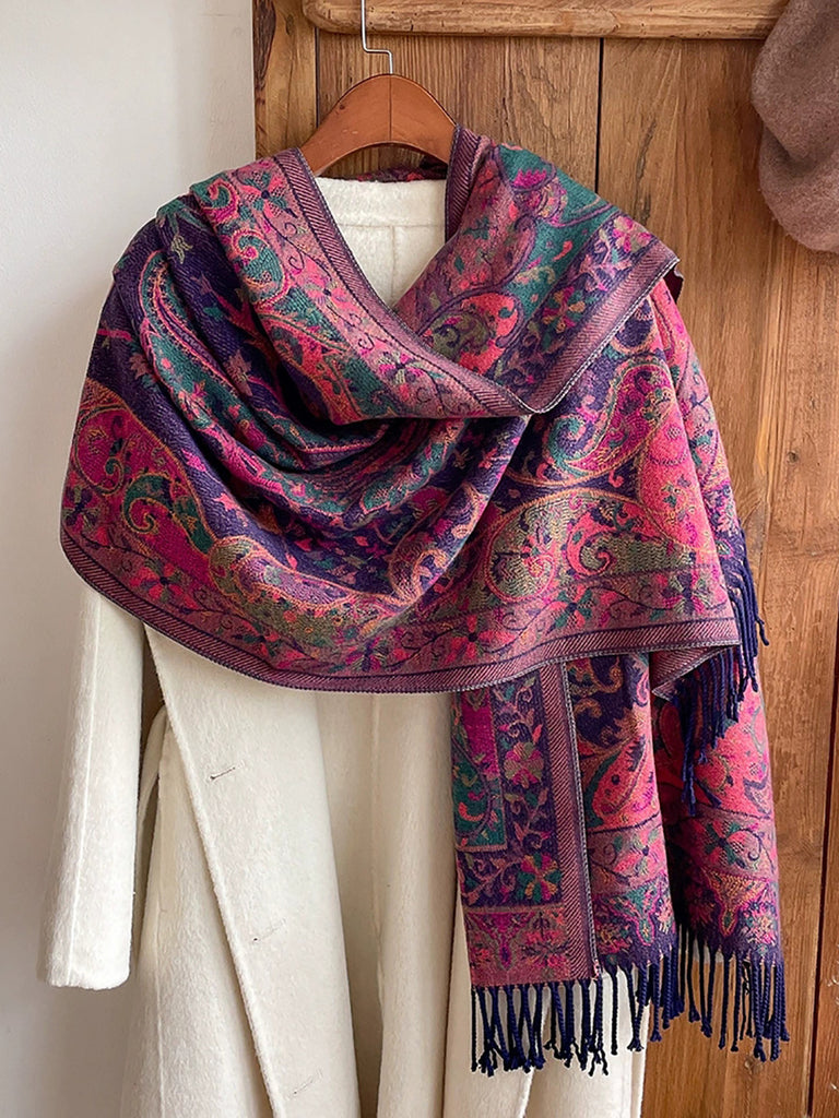 Kvinder Vinter Etnisk Blomster Kvast Sjal Tørklæde