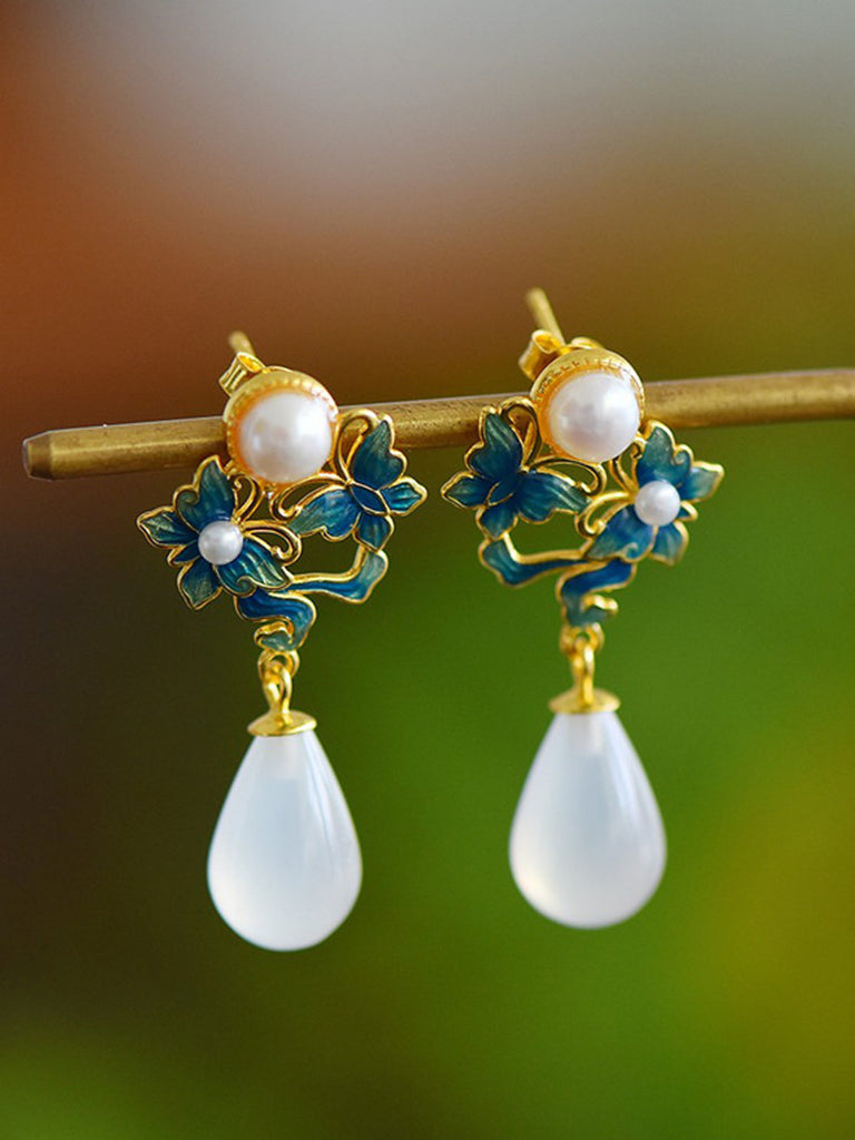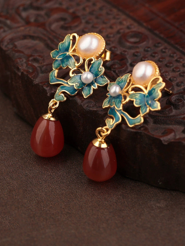 Etnisk Emalje Sommerfugl Øreringe i 925 Sølvperle Agat til Kvinder