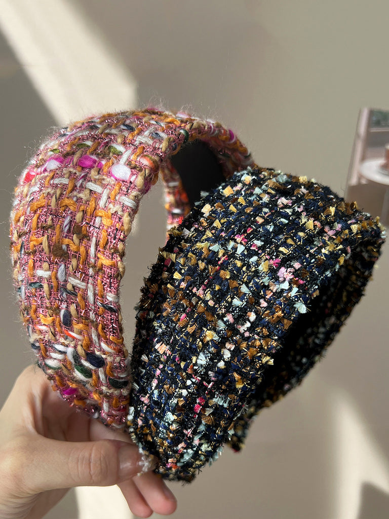 4 stk. bredt vinterhårbånd med kunstnerisk ternet mønster