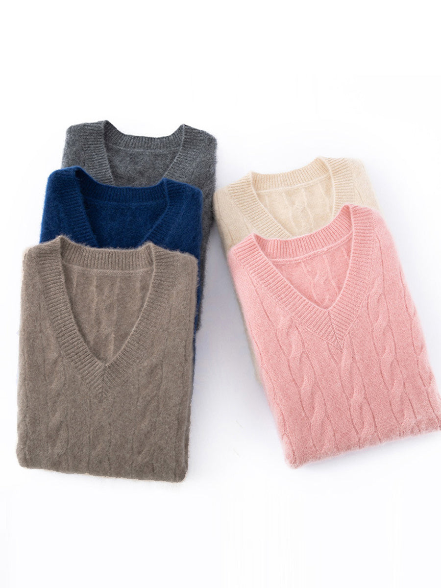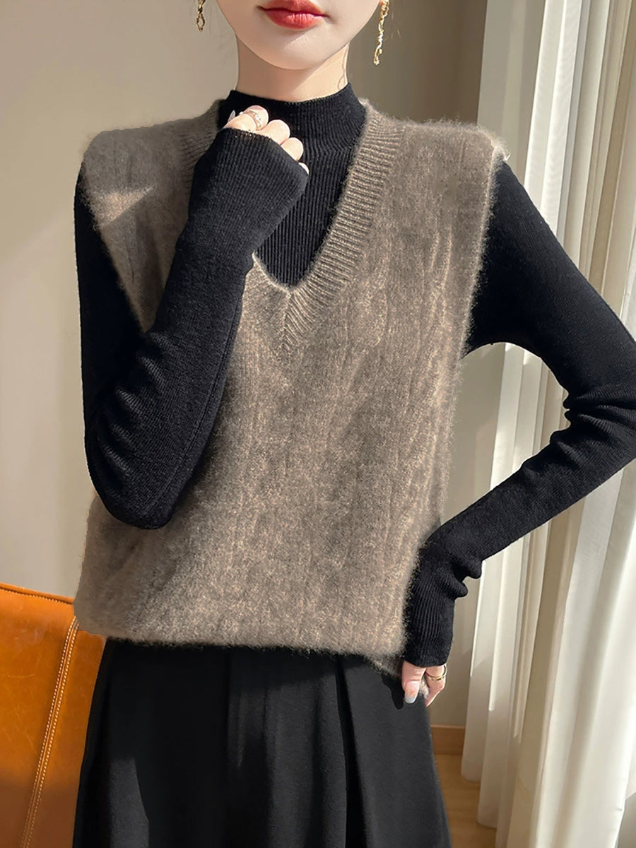 Kvinder Efterår Casual Ren Farve V-Hals Strikket Vest