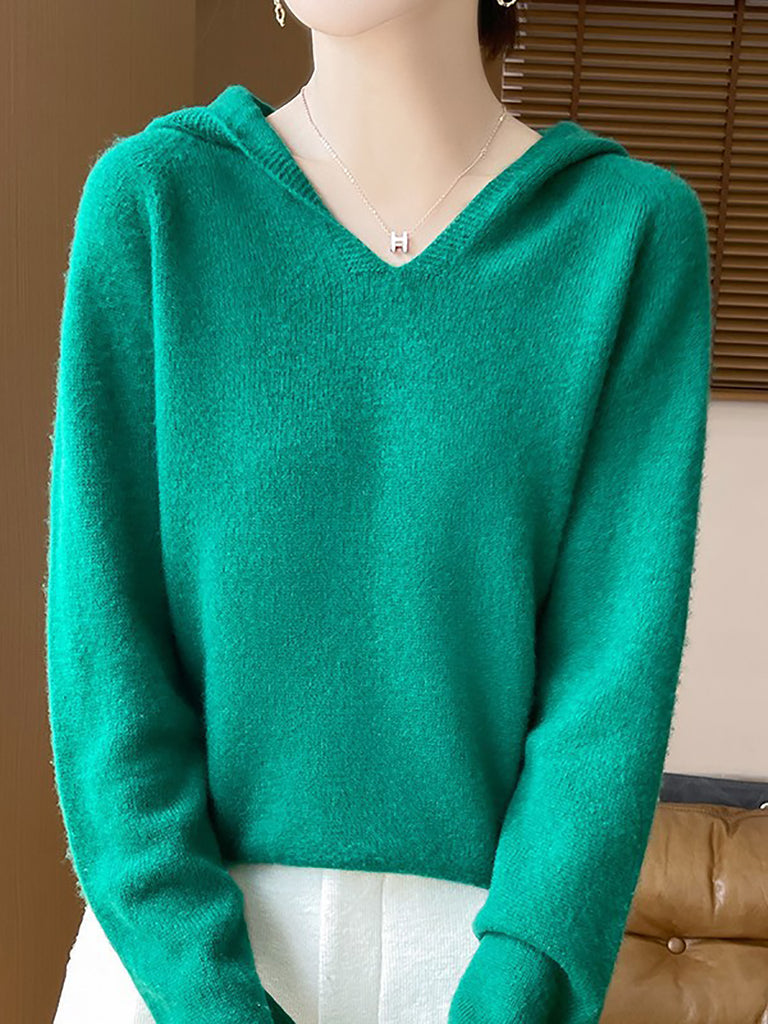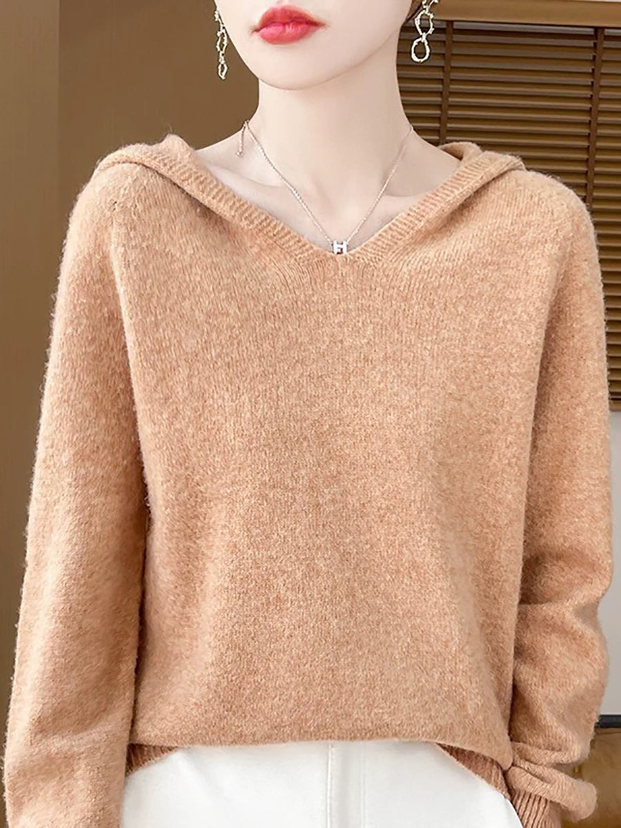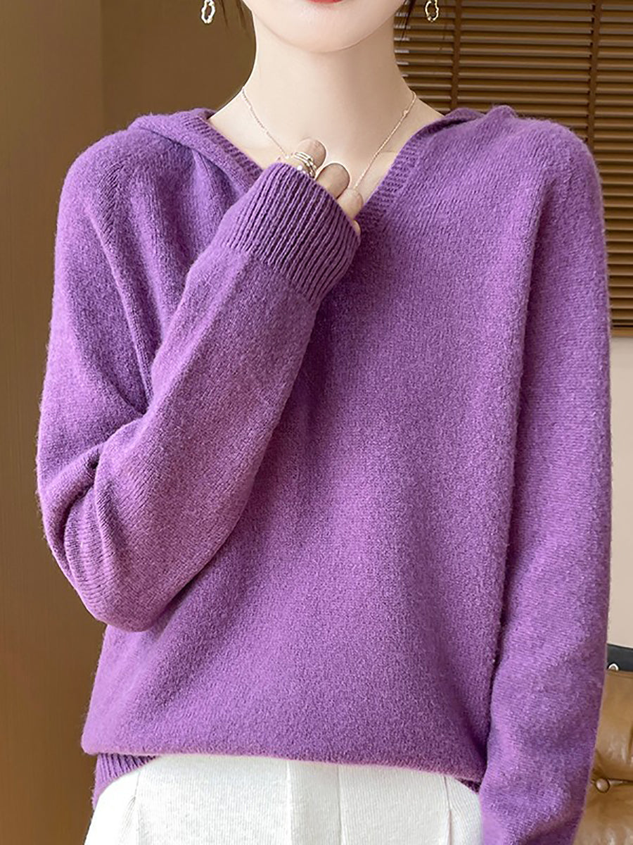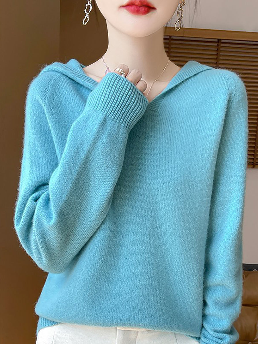 Kvinder Efterår Kunstnerisk Ren Farve Hættetrøje