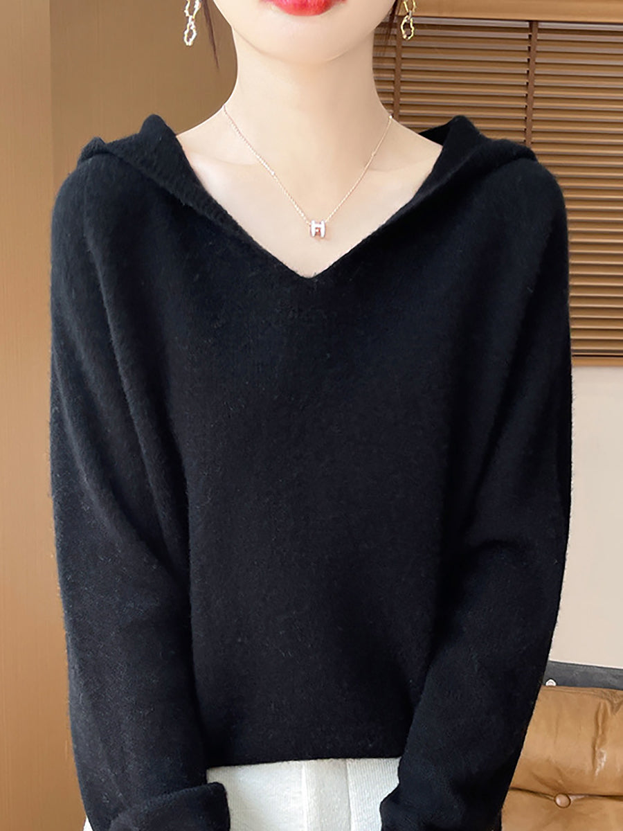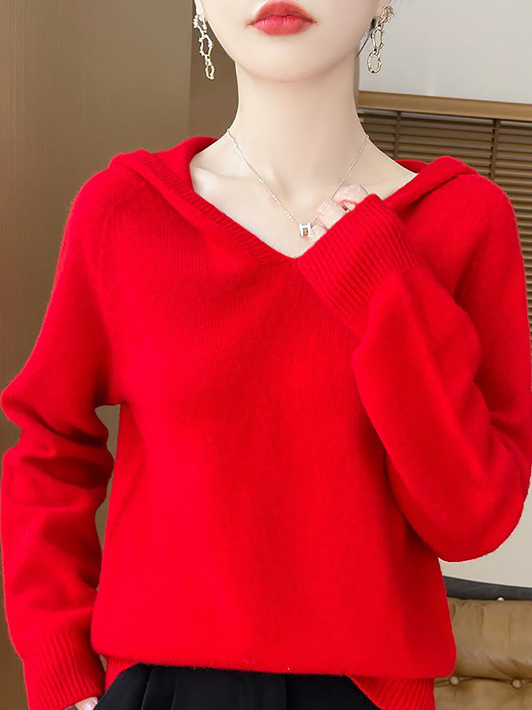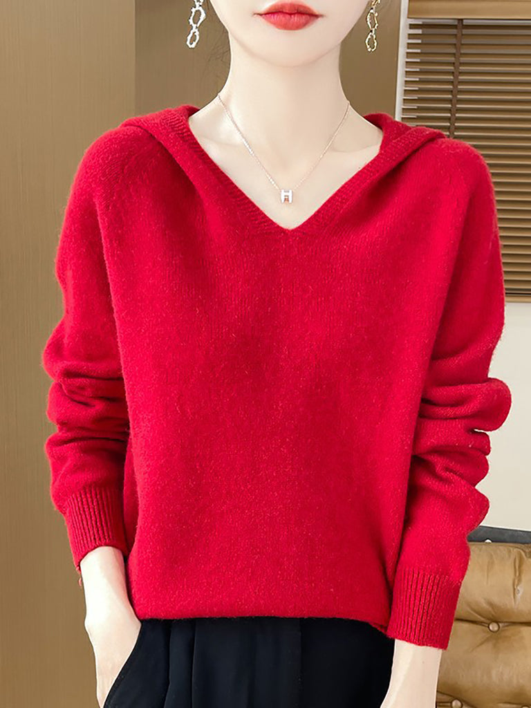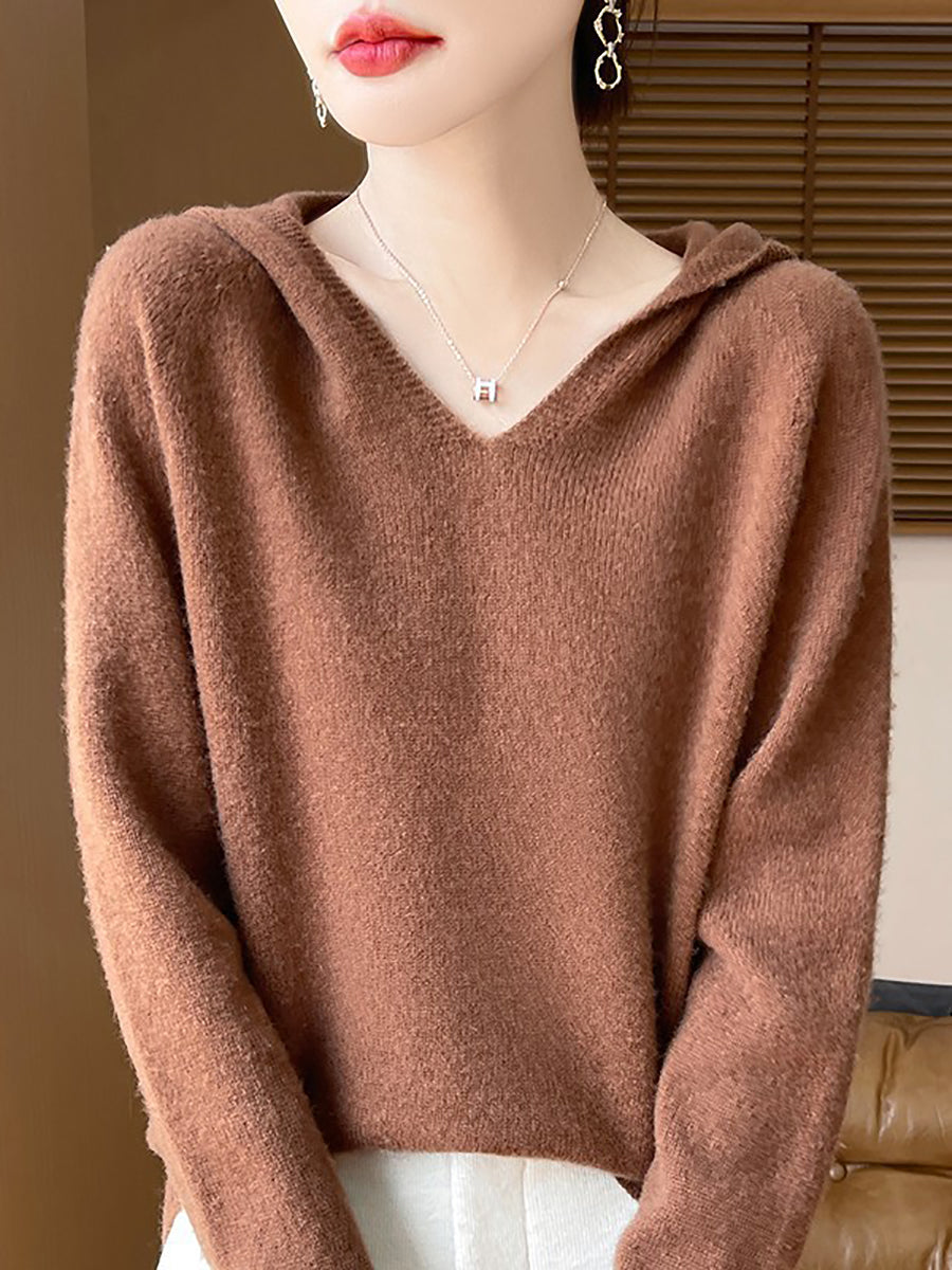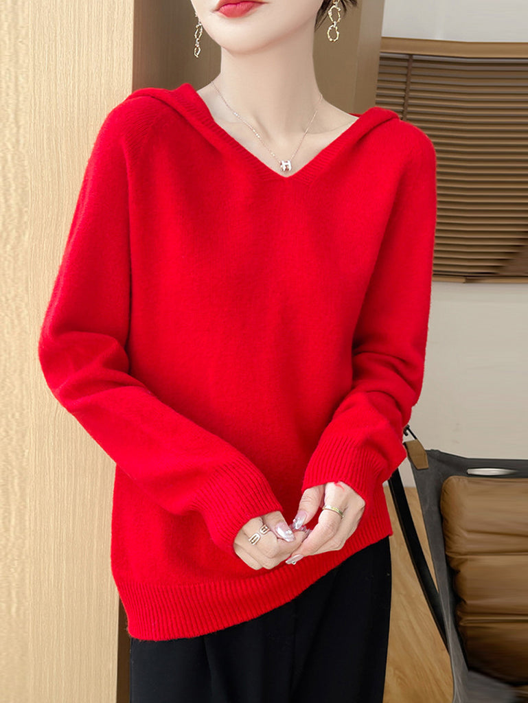 Kvinder Efterår Kunstnerisk Ren Farve Hættetrøje