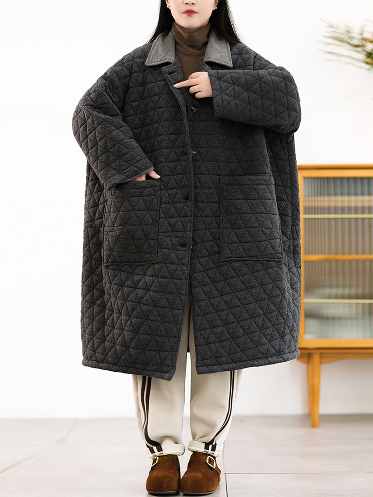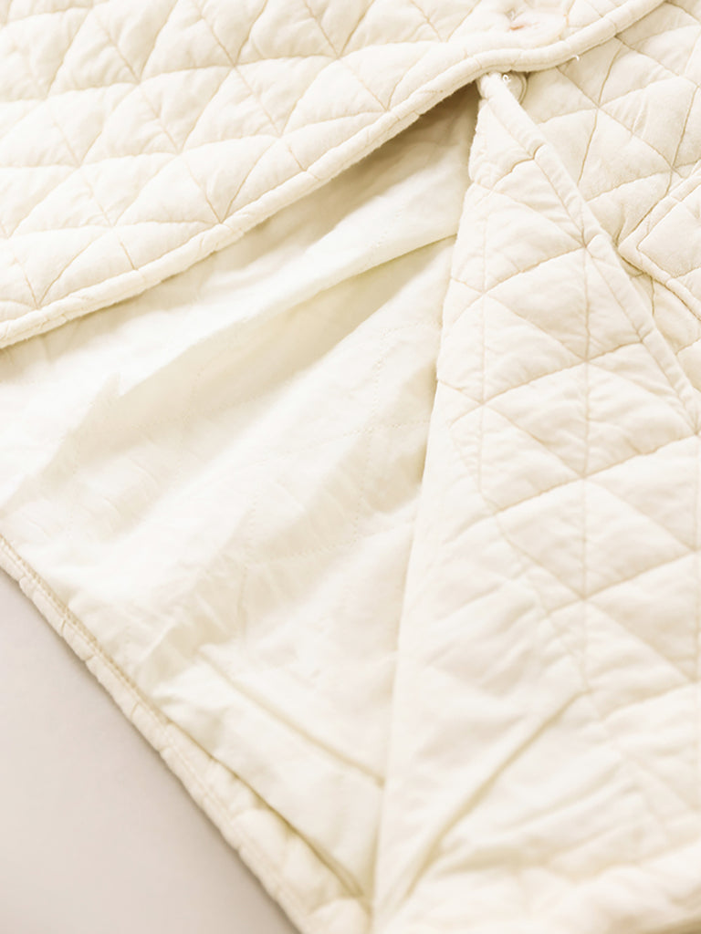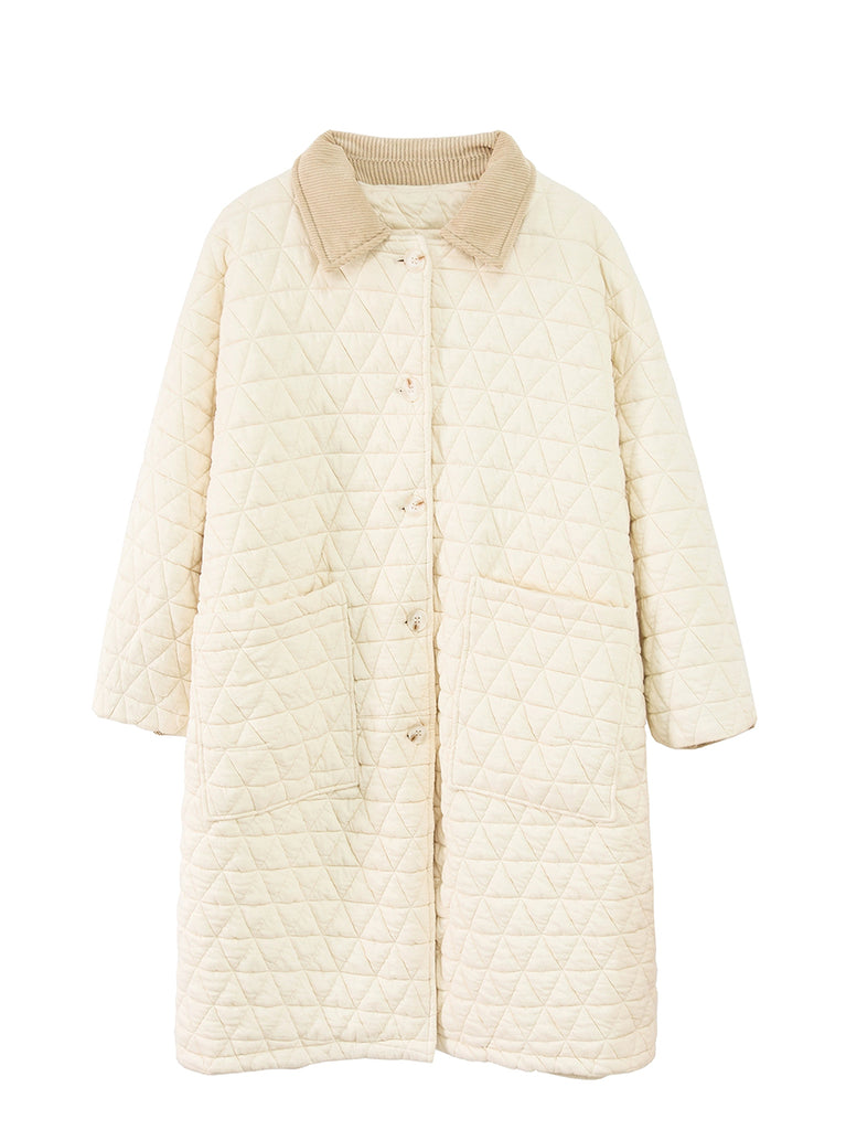 Denne polstrede frakke er fremstillet af førsteklasses bomuldsstof og har en klassisk turn-down krave og raglanærmer, der giver ubegrænset bevægelsesfrihed og moderne komfort. Den diskrete ensfarvede farvekombination tilbyder exceptionel alsidighed til lag-på-lag og styling på tværs af sæsoner. Med sit vintage-inspirerede design og lange ærmer leverer dette stykke betydelig varme i efterårs- og vintermånederne, samtidig med at det bevarer et poleret og sofistikeret udseende.