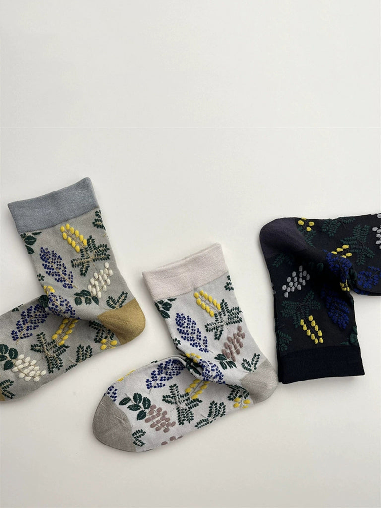 3 Par Kvinder Sommerblomst Jacquard Lange Sokker