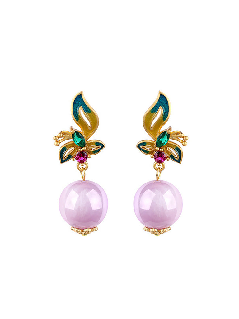 Etniske Kvinder 24K Forgyldte Jade Øreringe
