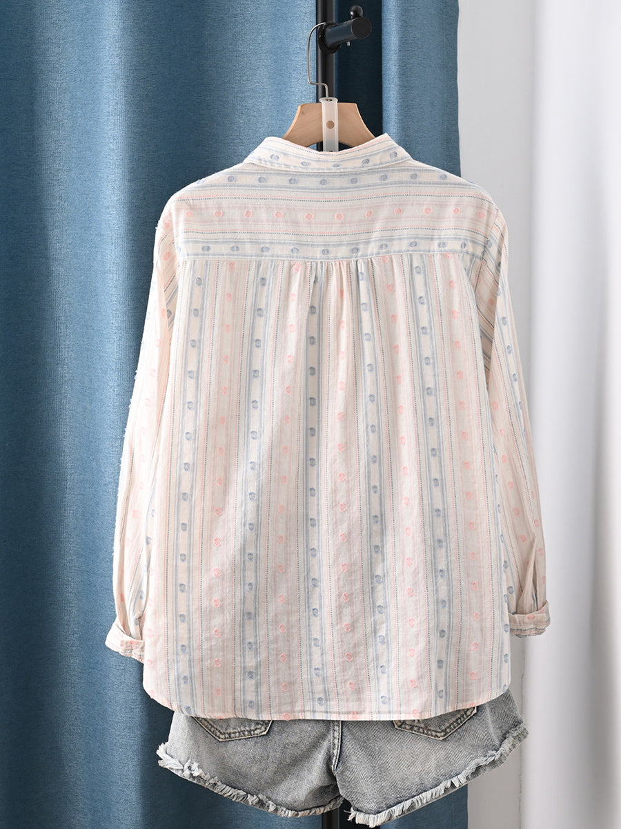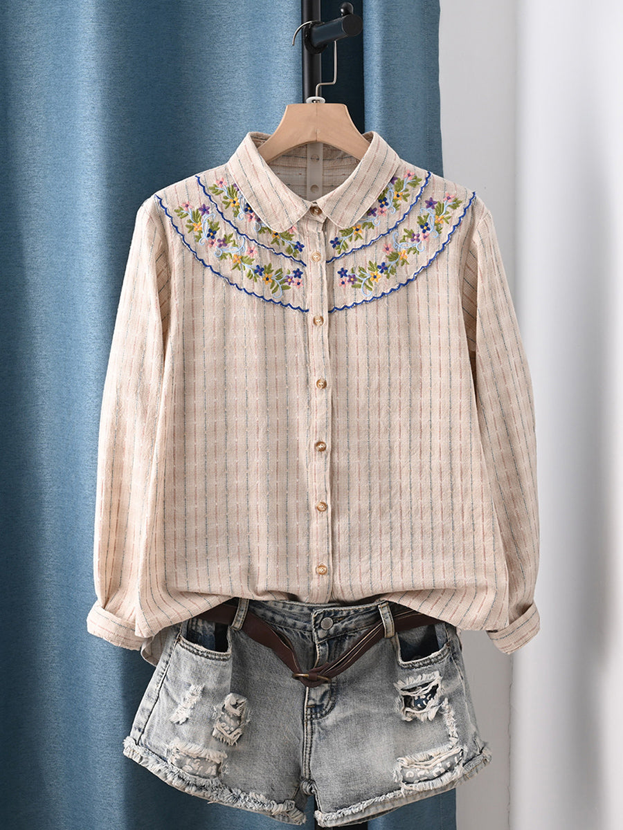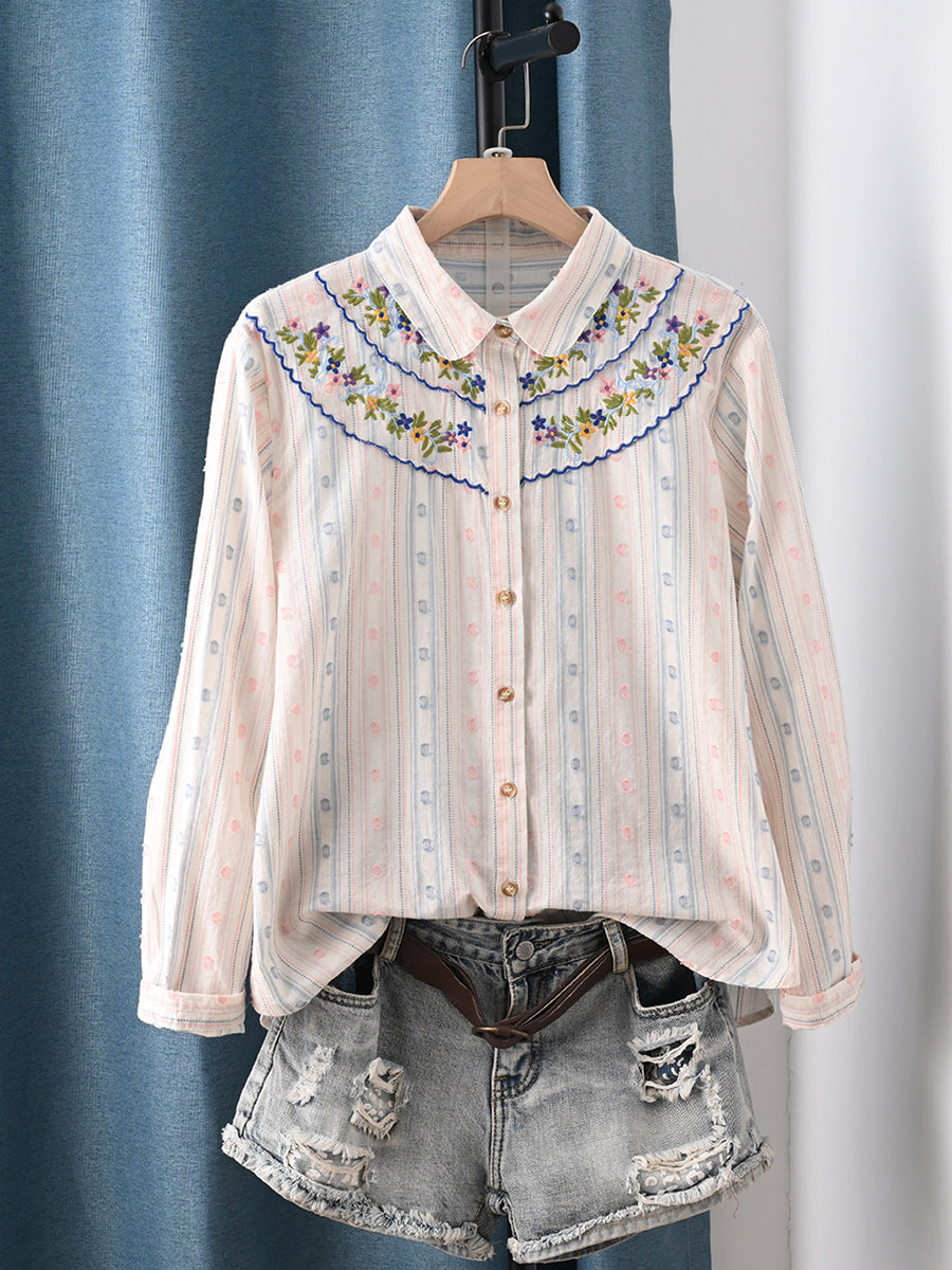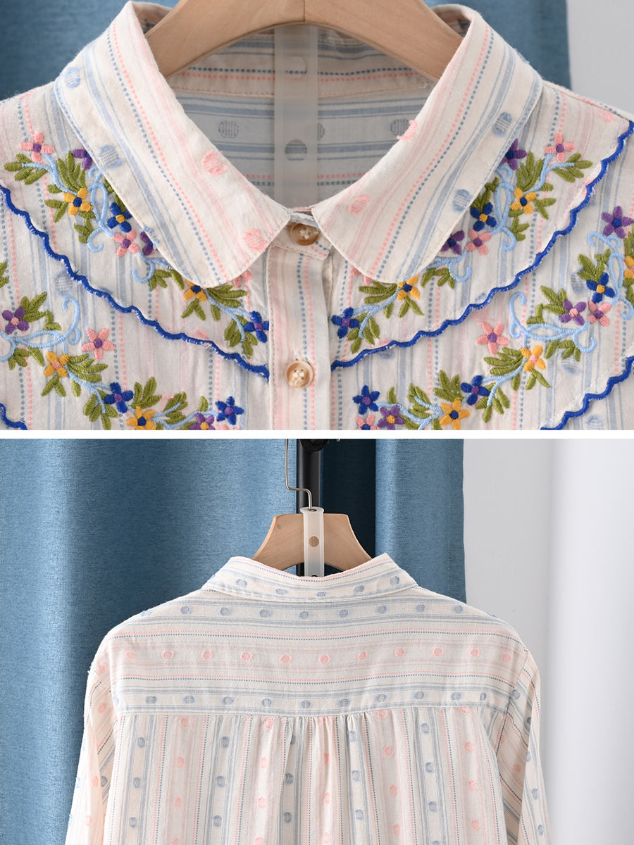 Dame forårsskjorte med kunstnerisk broderi i 100% bomuld