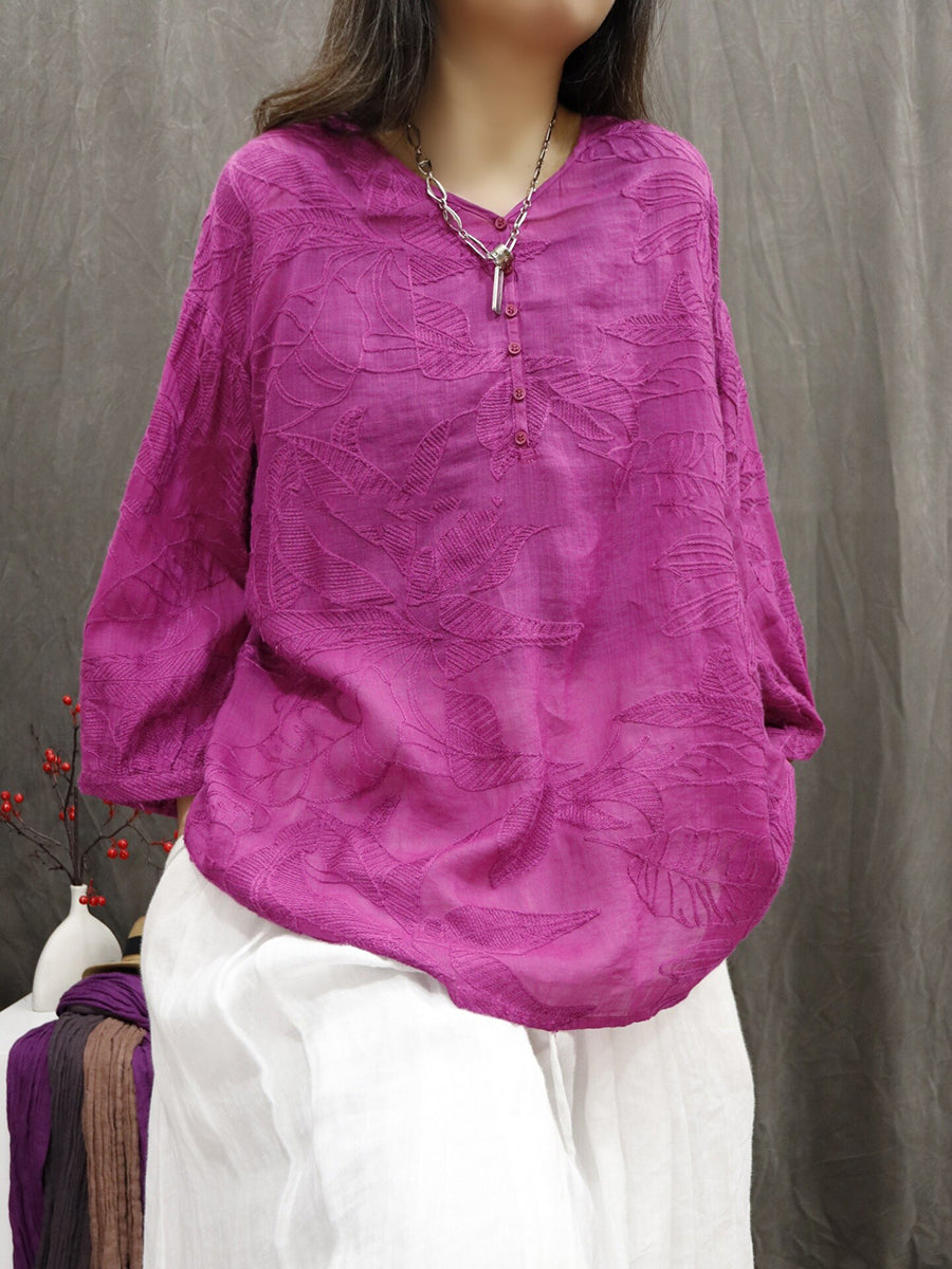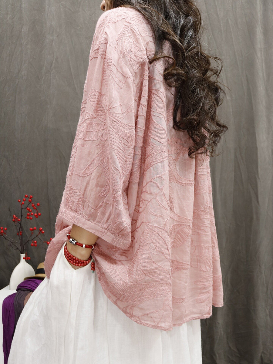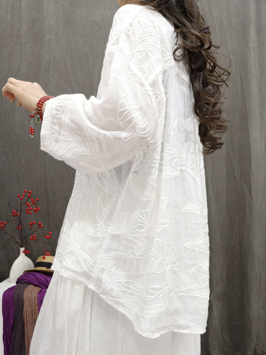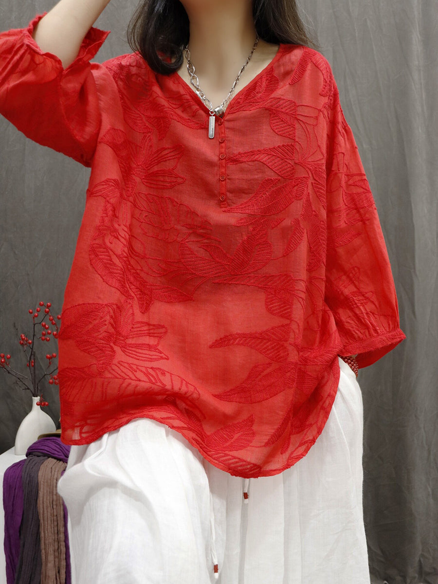 Kvinder Sommer Kunstnerisk Blomsterbroderi 100% Ramie Bluse