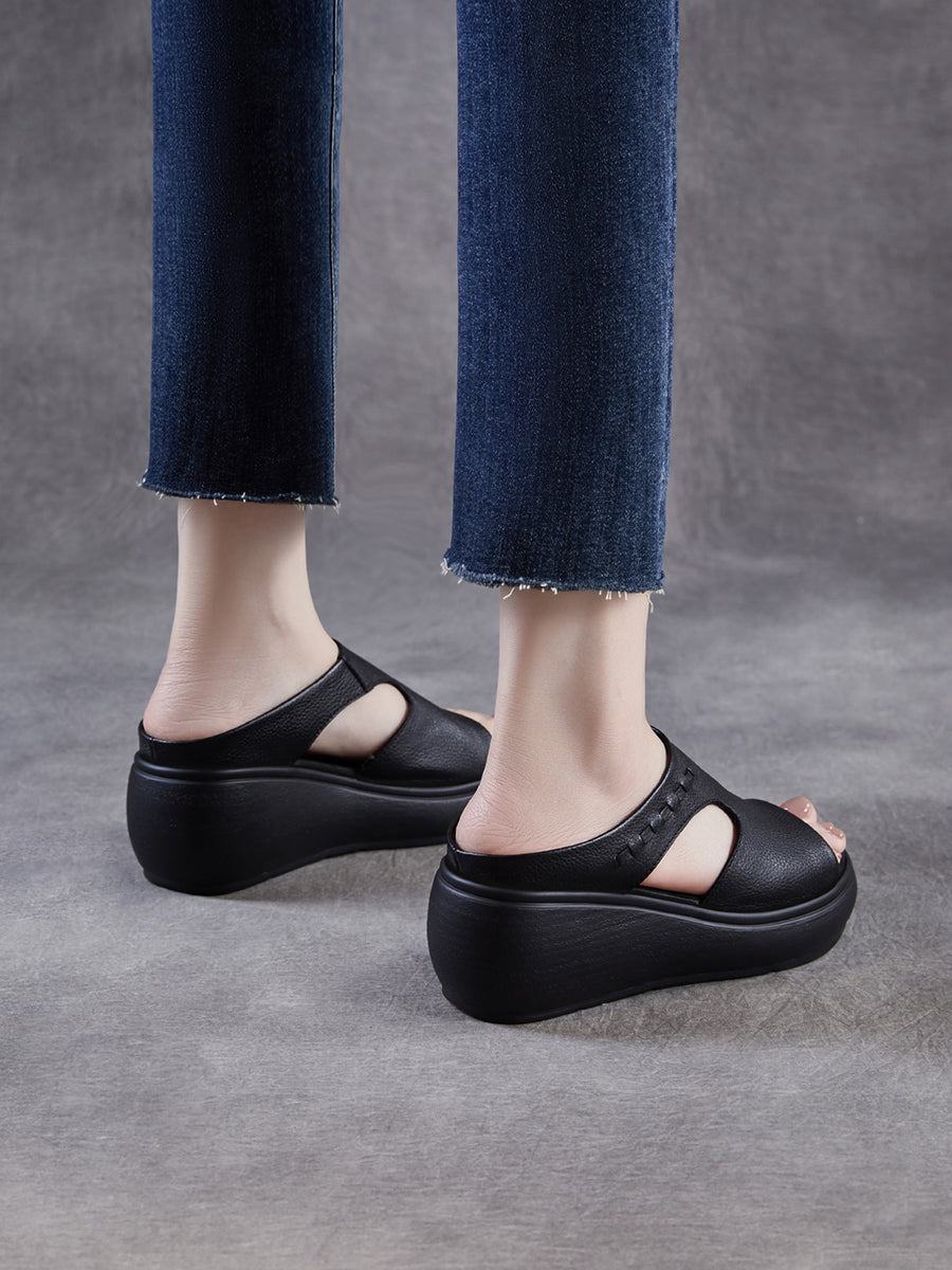 Kvinder Sommer Casual Ægte Læder Platform Sandaler
