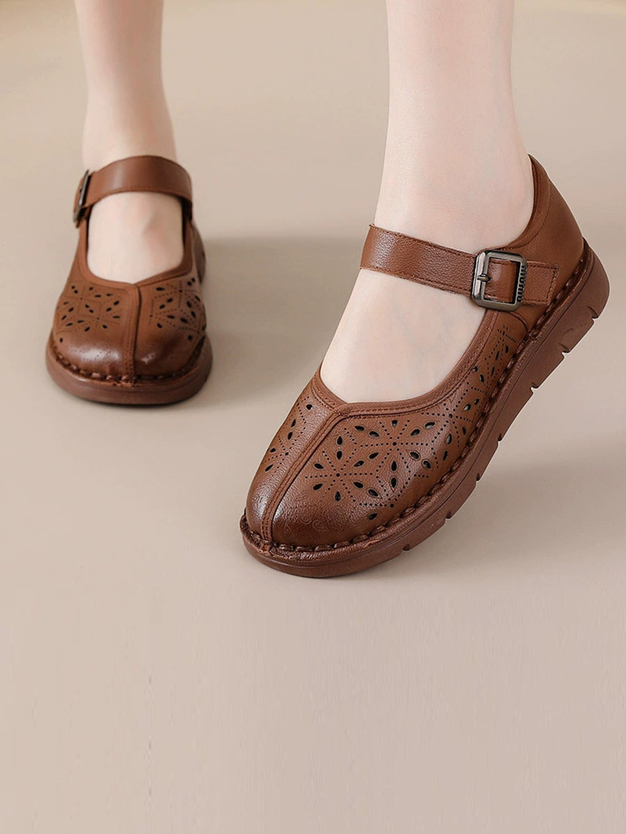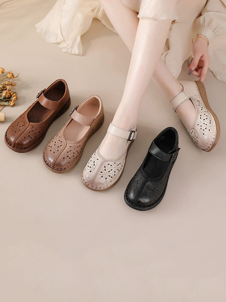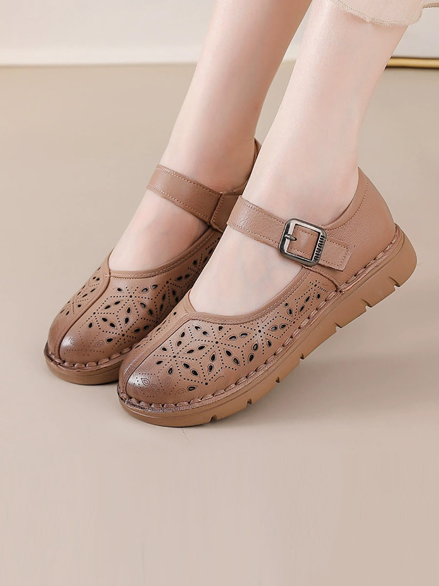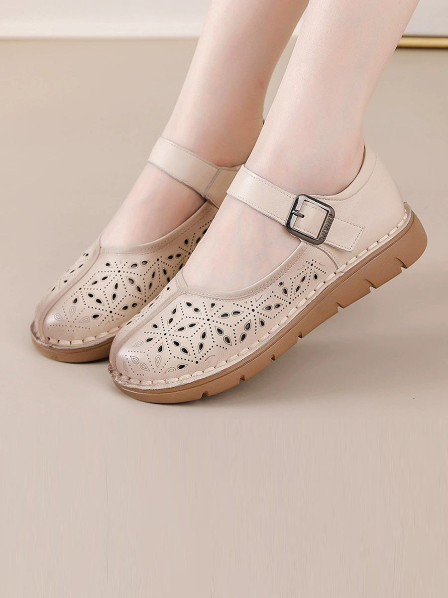 Kvinder Sommer Ægte Læder Spliced Flade Sko