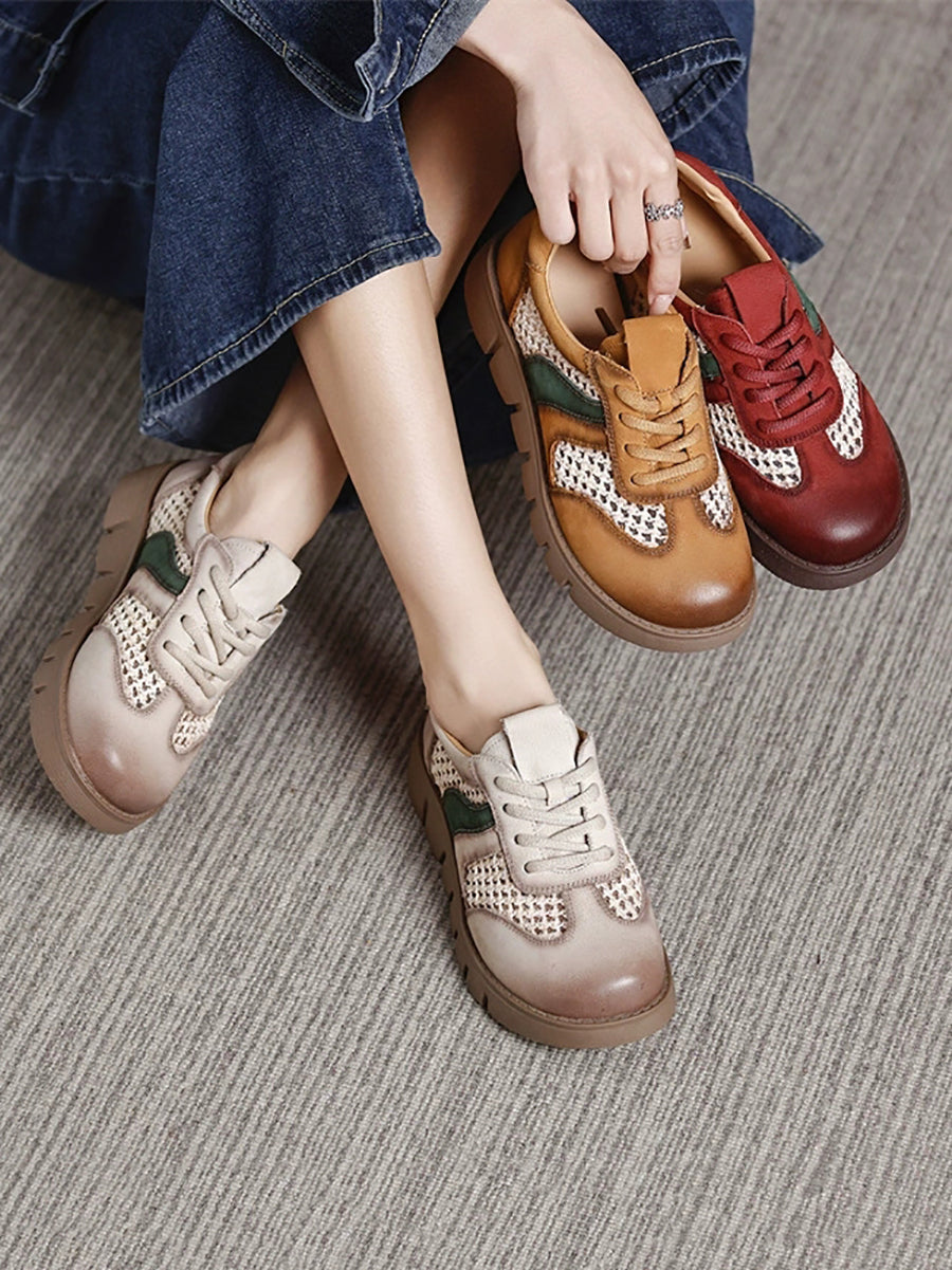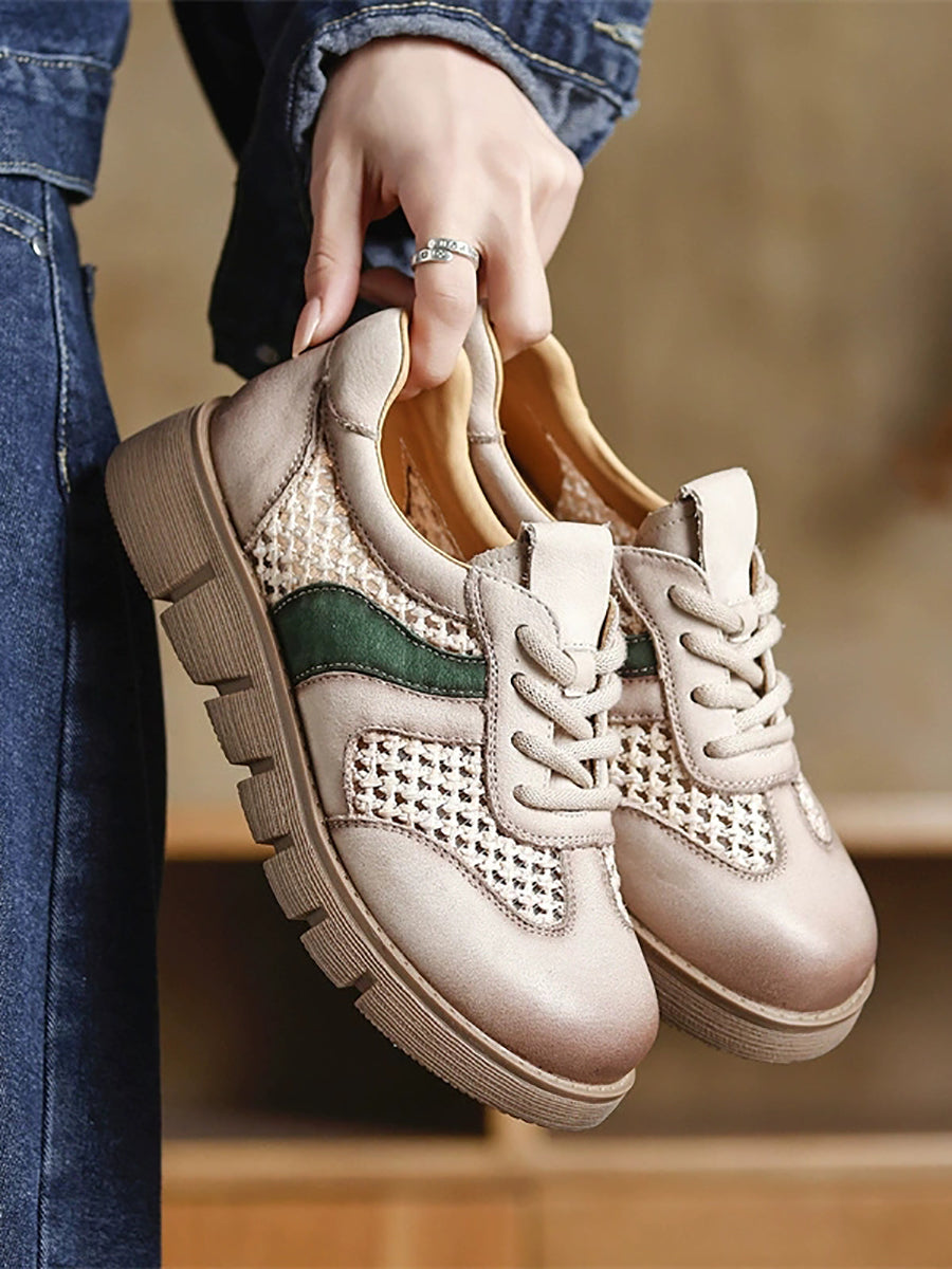 Kvinder Sommer Ægte Læder Spliced Flade Sko
