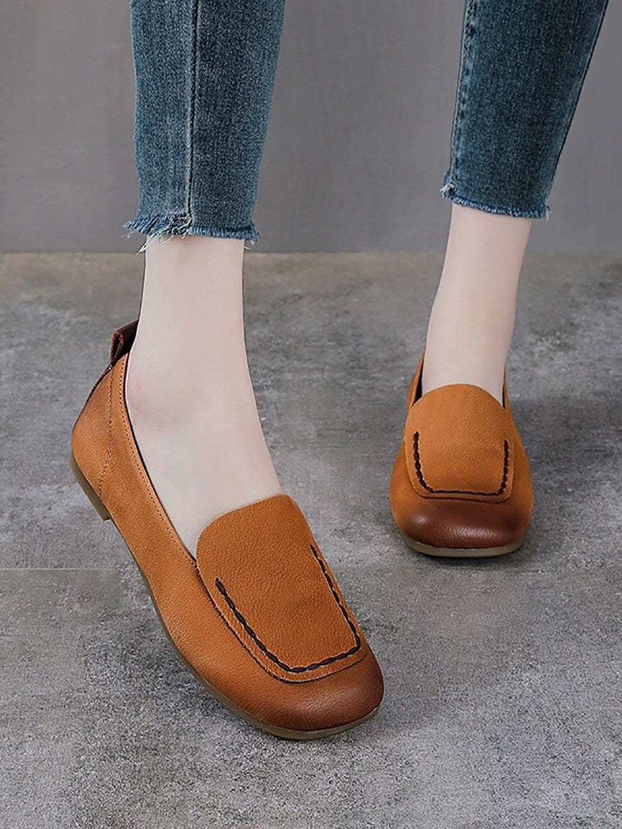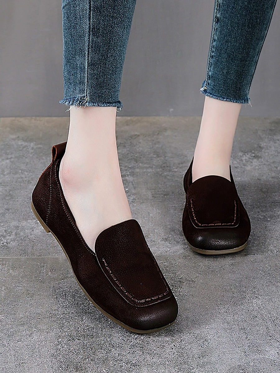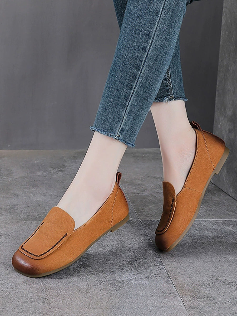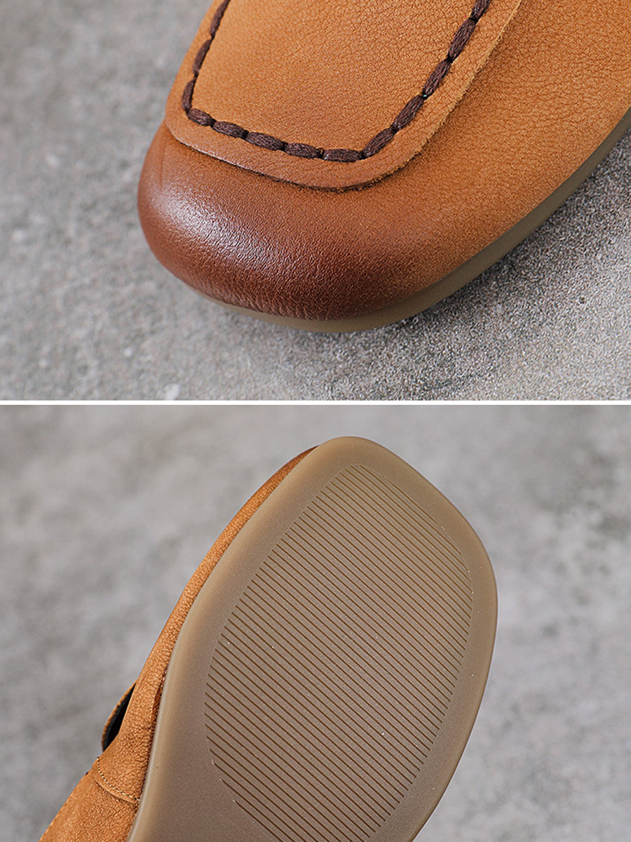Kvinder Sommer Ægte Læder Firkantet Tå Sko