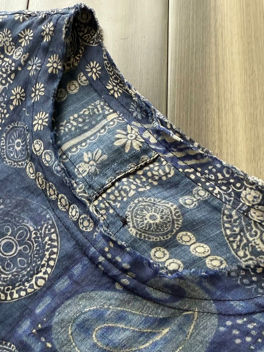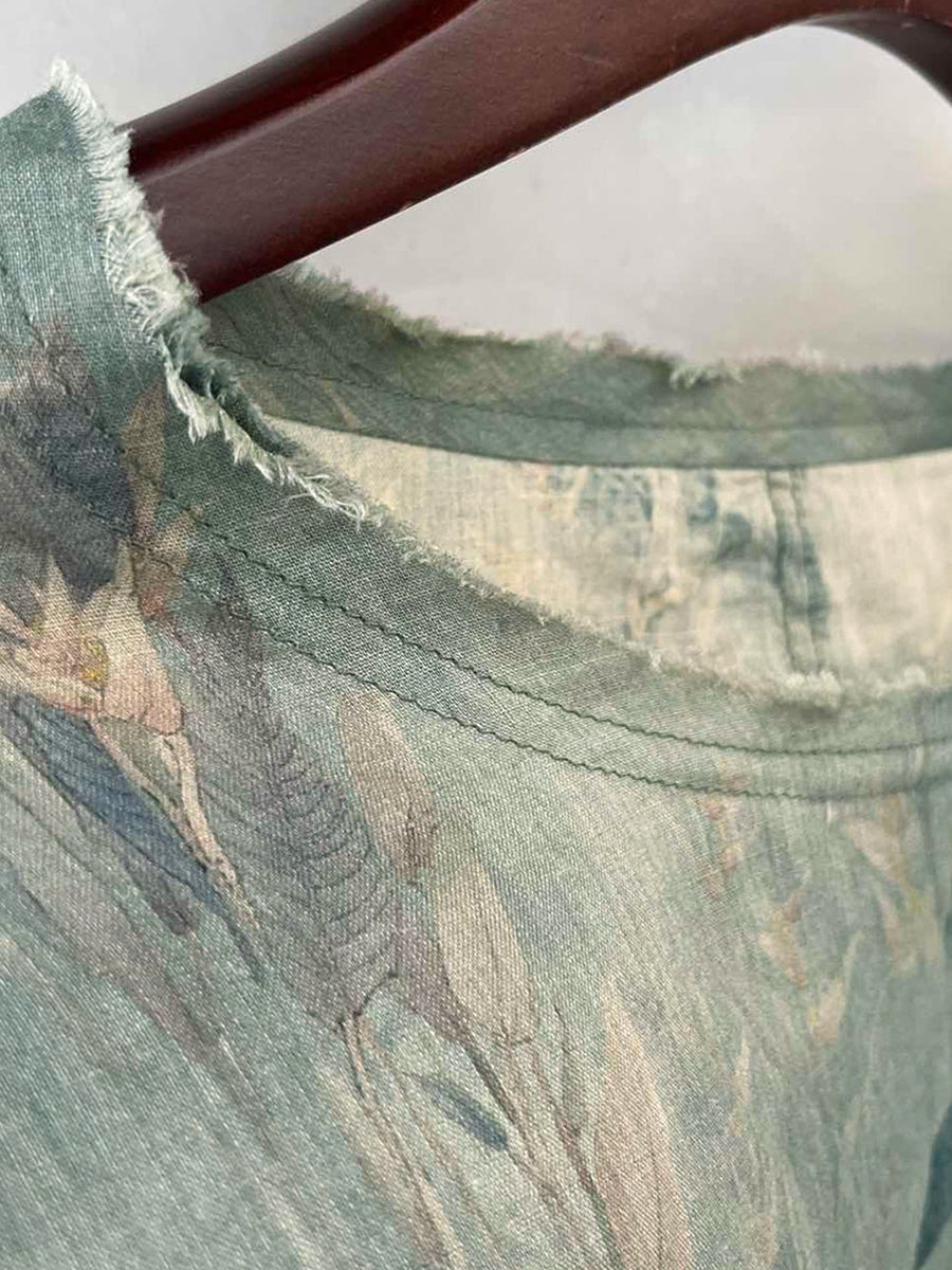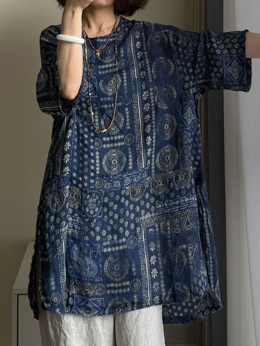 Dame Sommerskjorte med O-hals og Vintage Blomsterprint i 100% Raime