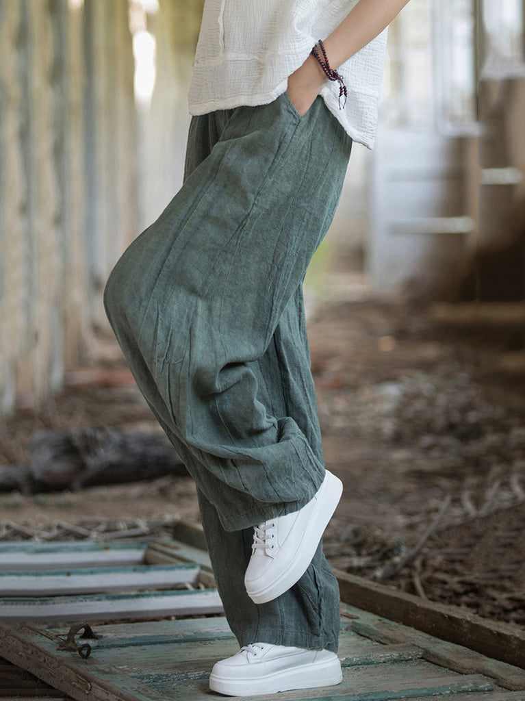 Kvinder Vintage Autumn Tie-dye Ramie Harem Pants
