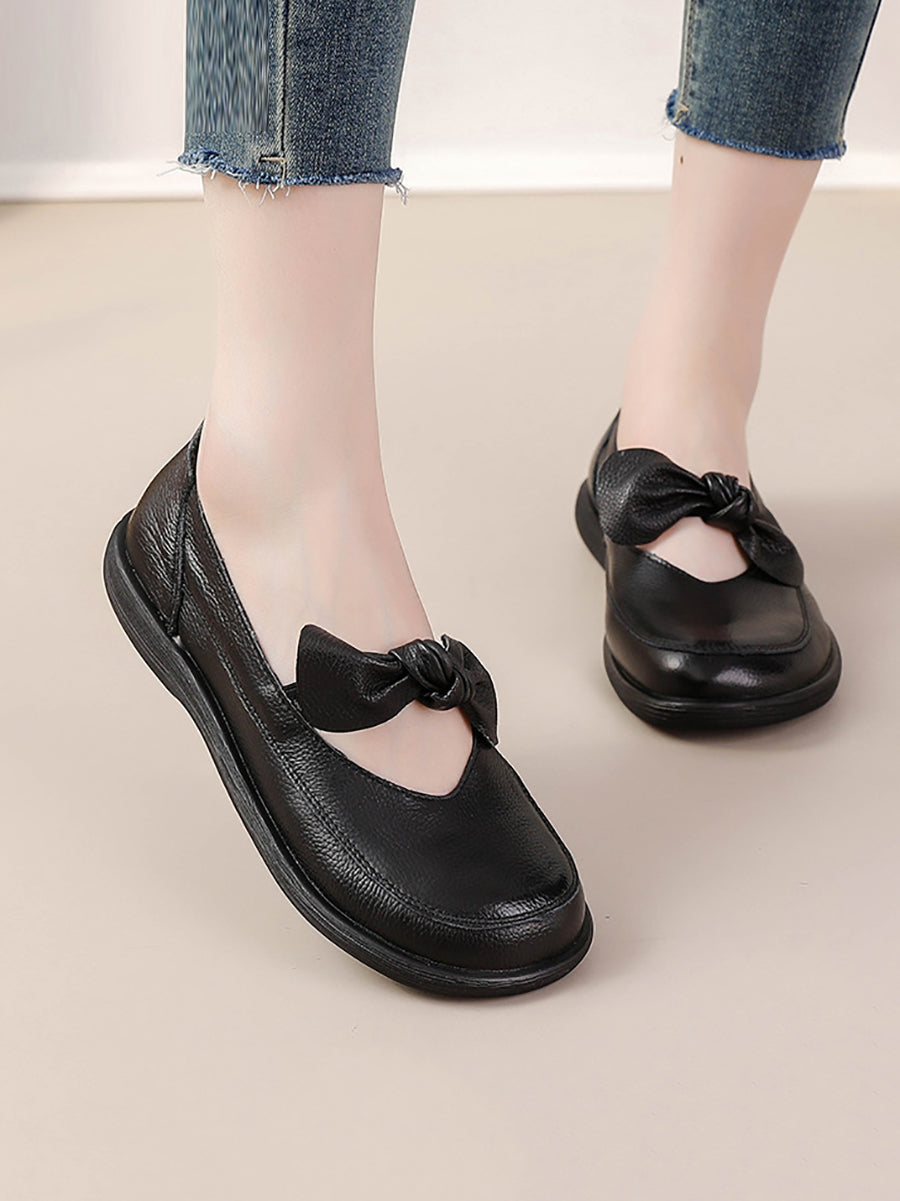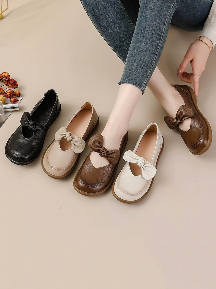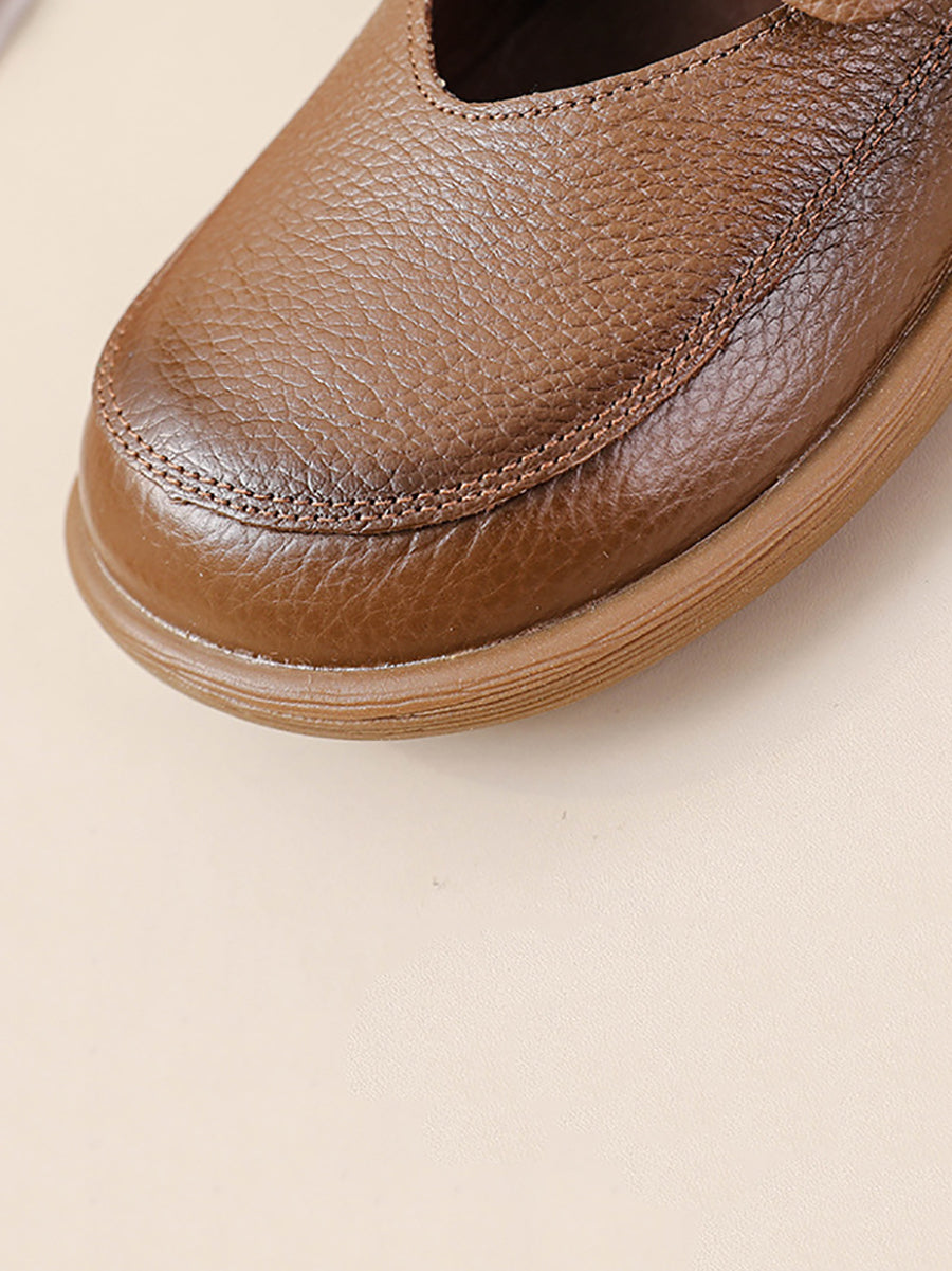 Dame vintage ægte læder lavhælede sko