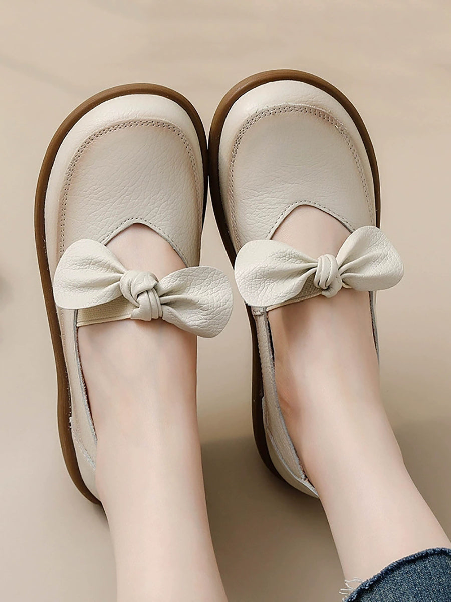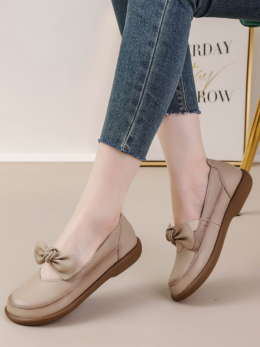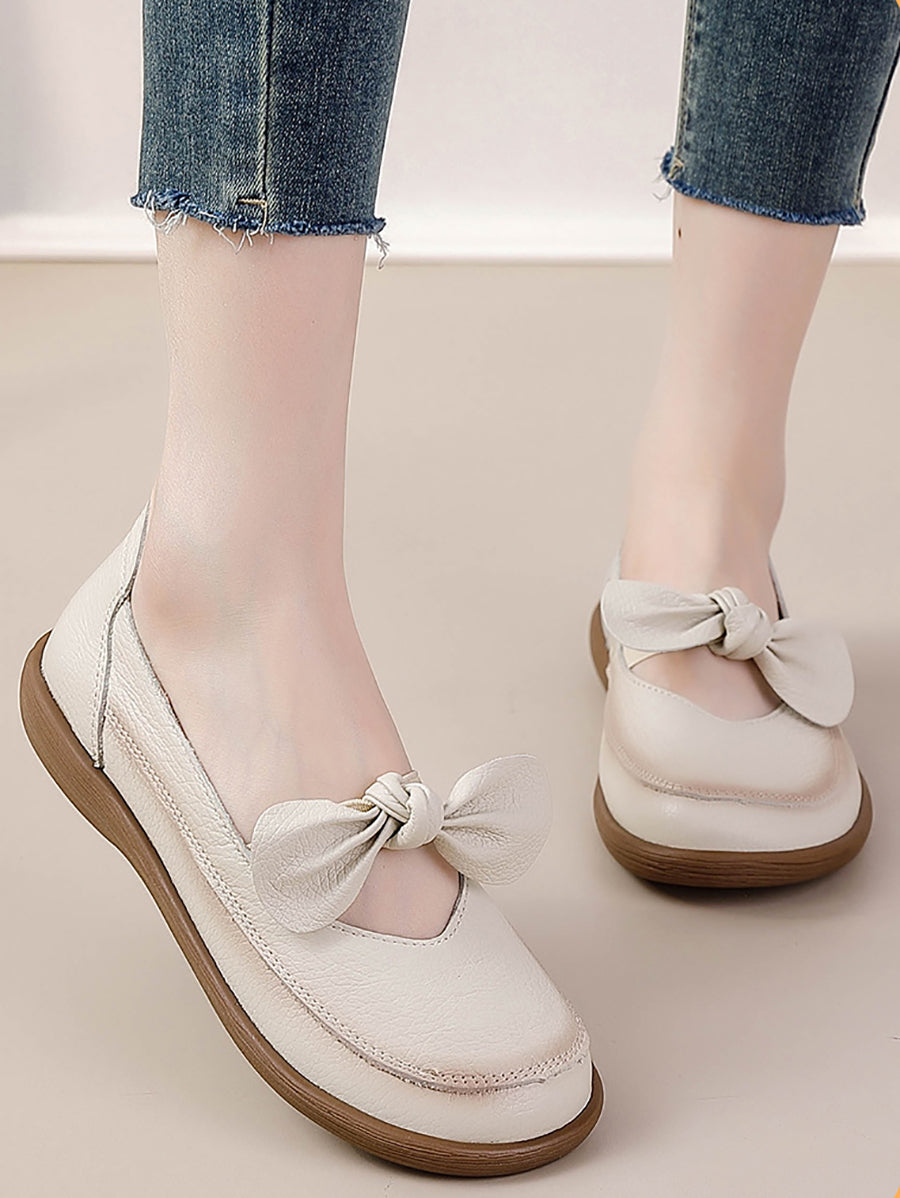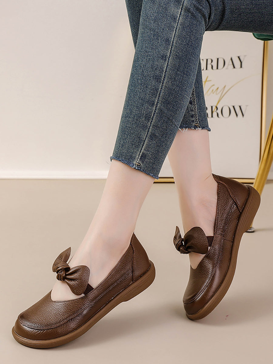 Dame vintage ægte læder lavhælede sko