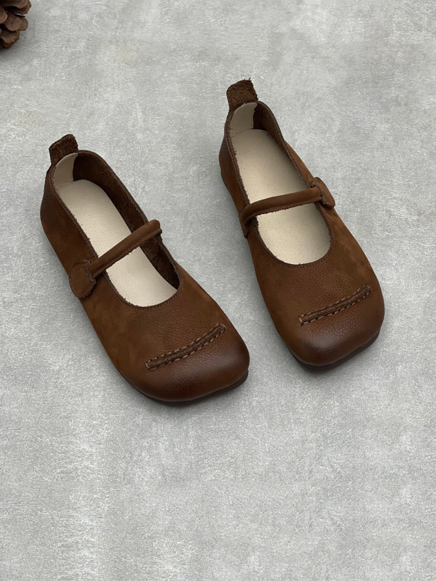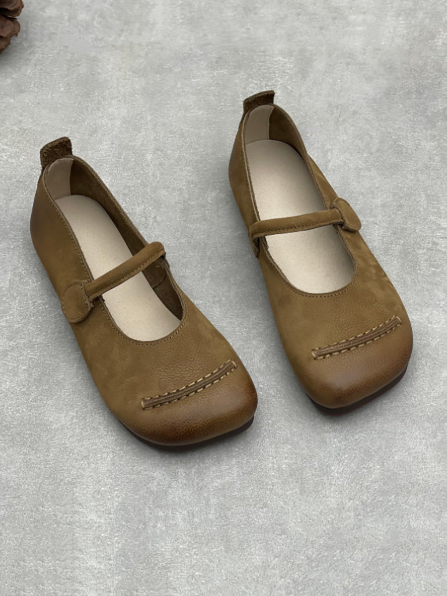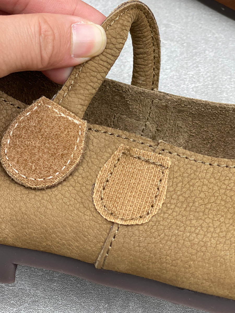 Dame vintage ægte læder lavhælede sko