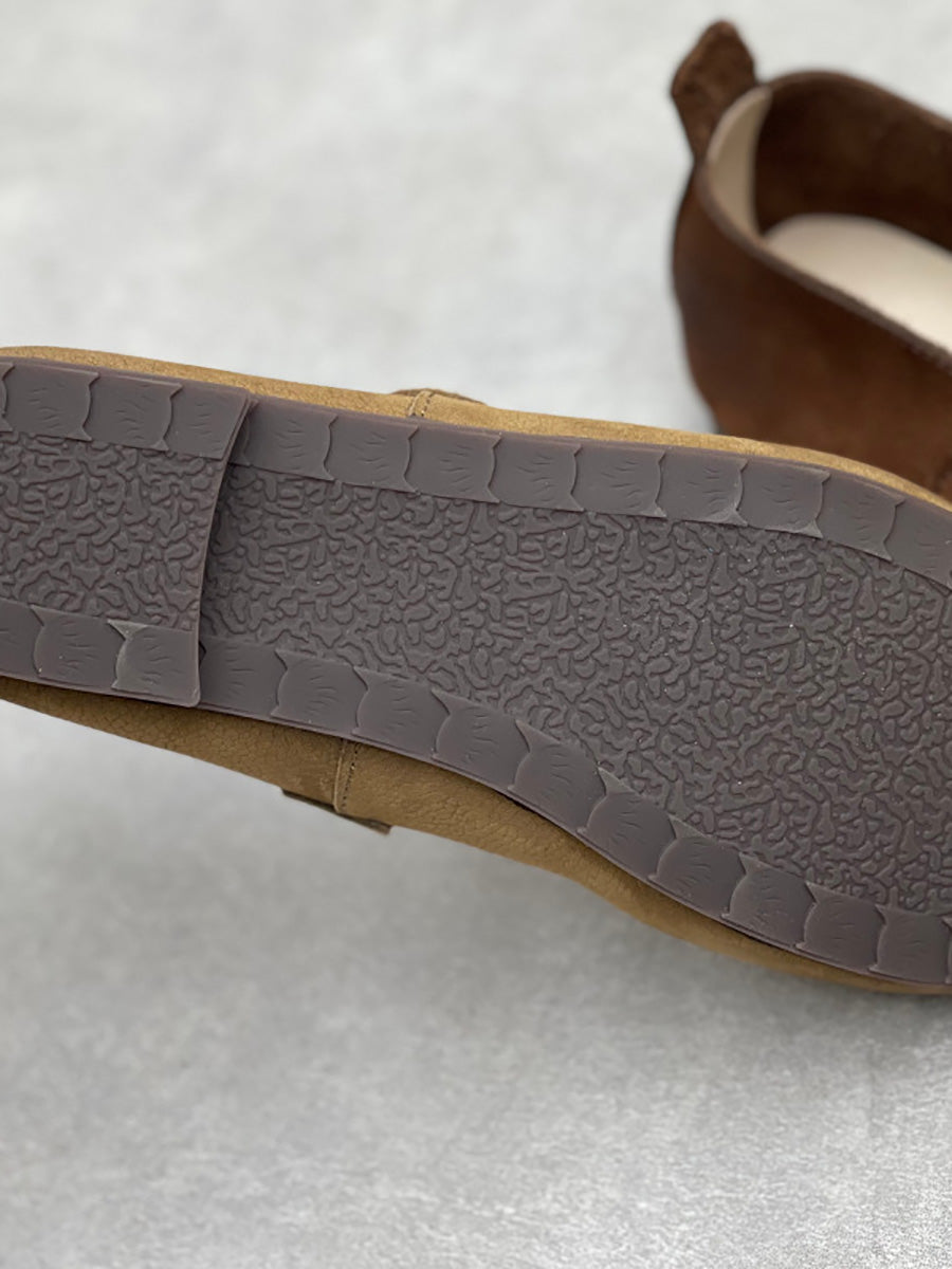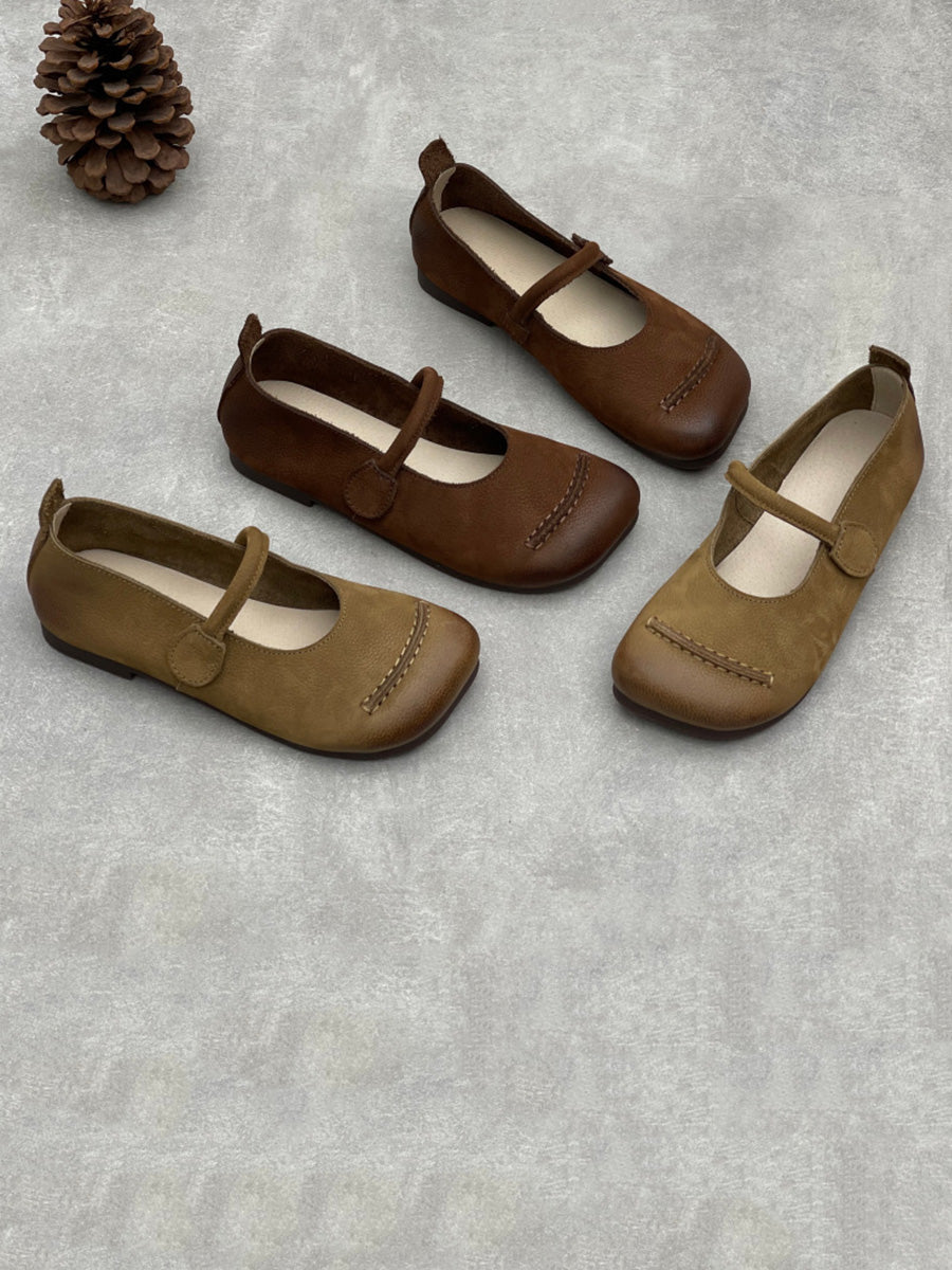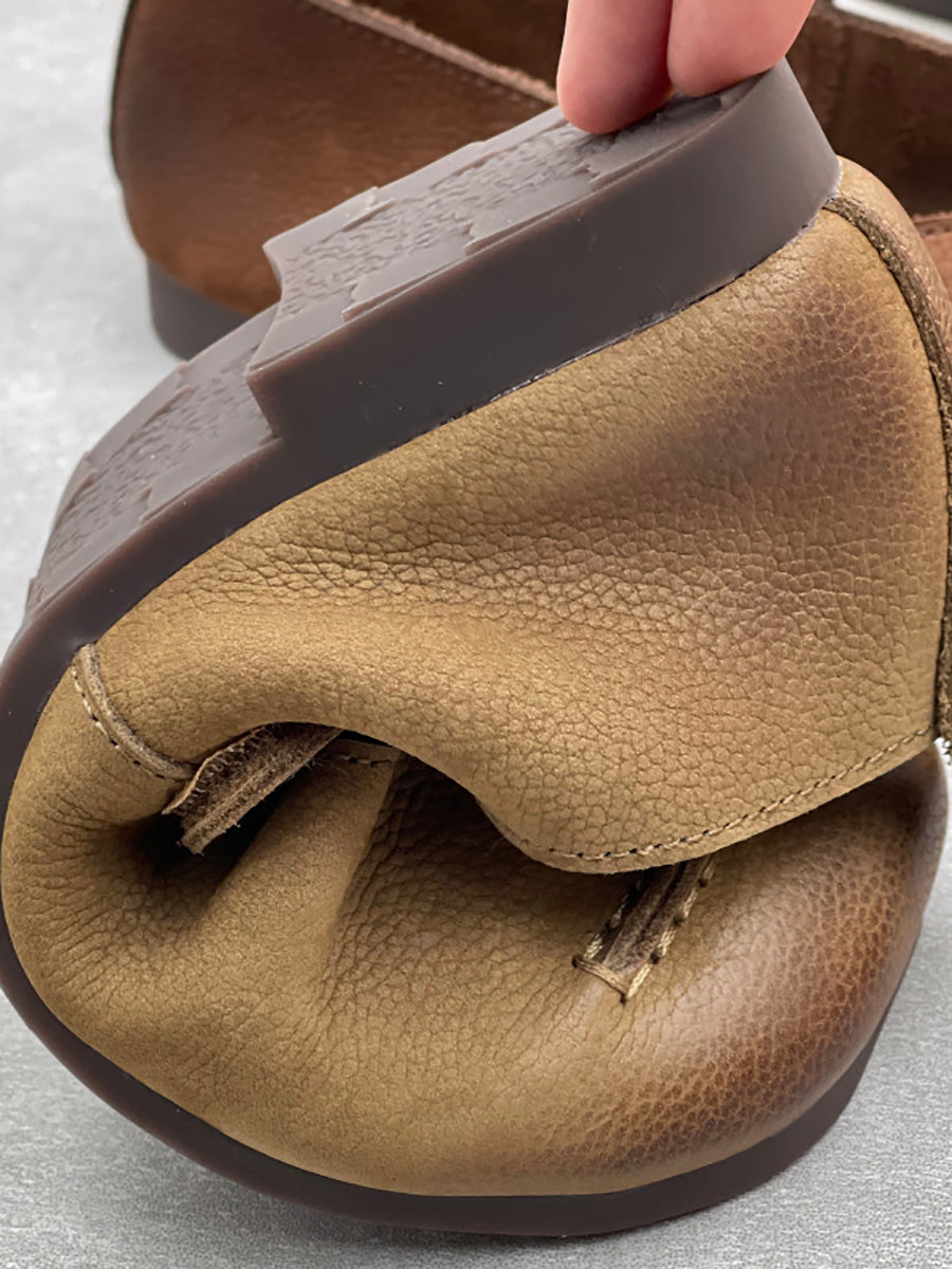 Dame vintage ægte læder lavhælede sko