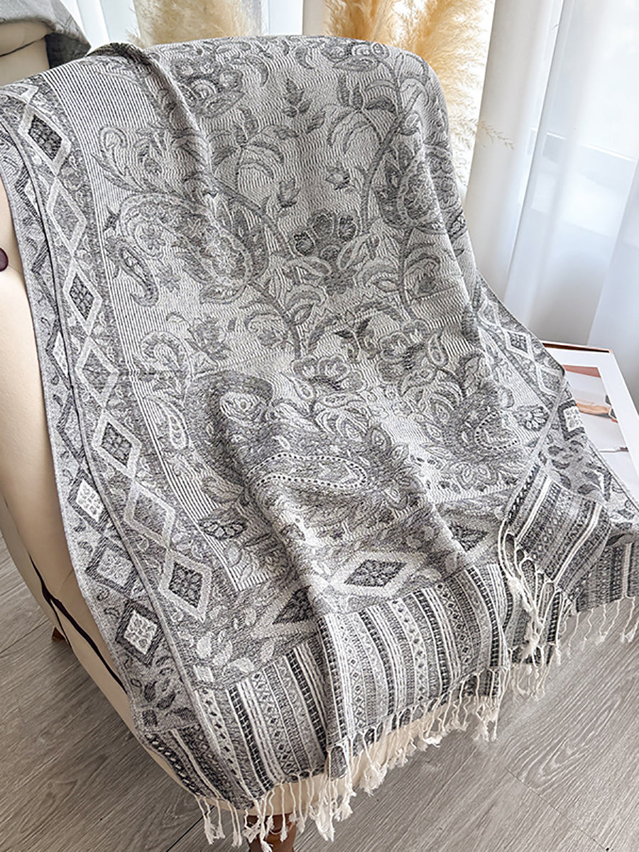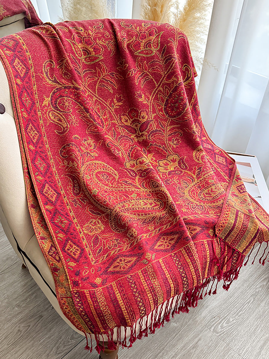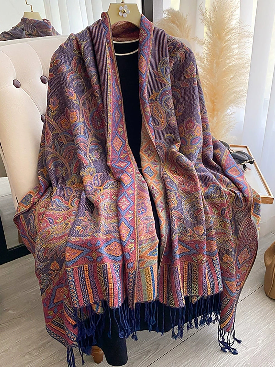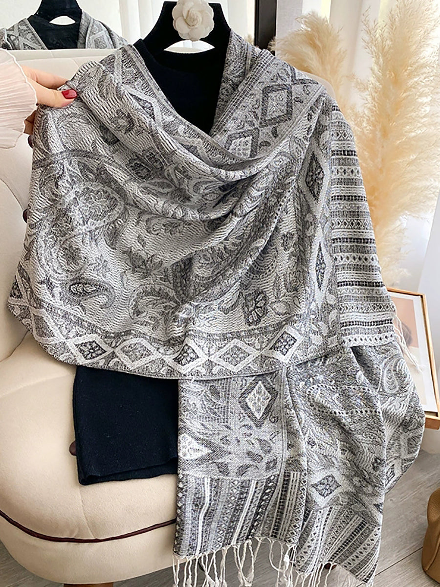 Kvinder Vinterblomst Jacquard Tassel Sjal Halstørklæde