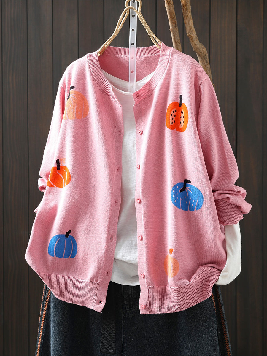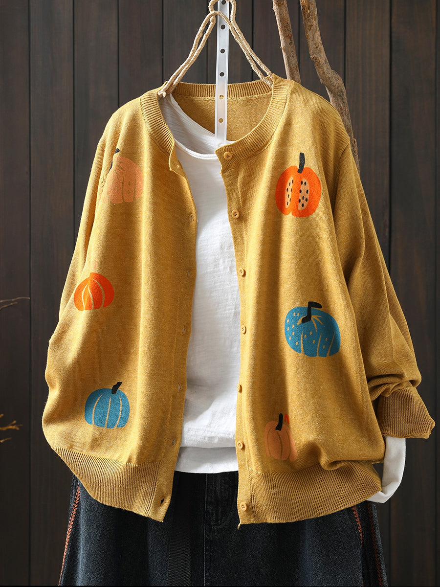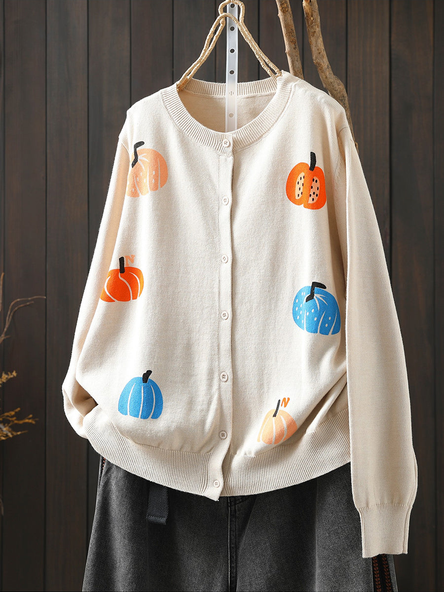 Künstlerischer Frühlingspullover mit Kürbismuster und Rundhalsausschnitt