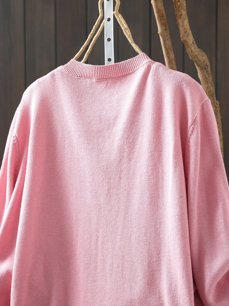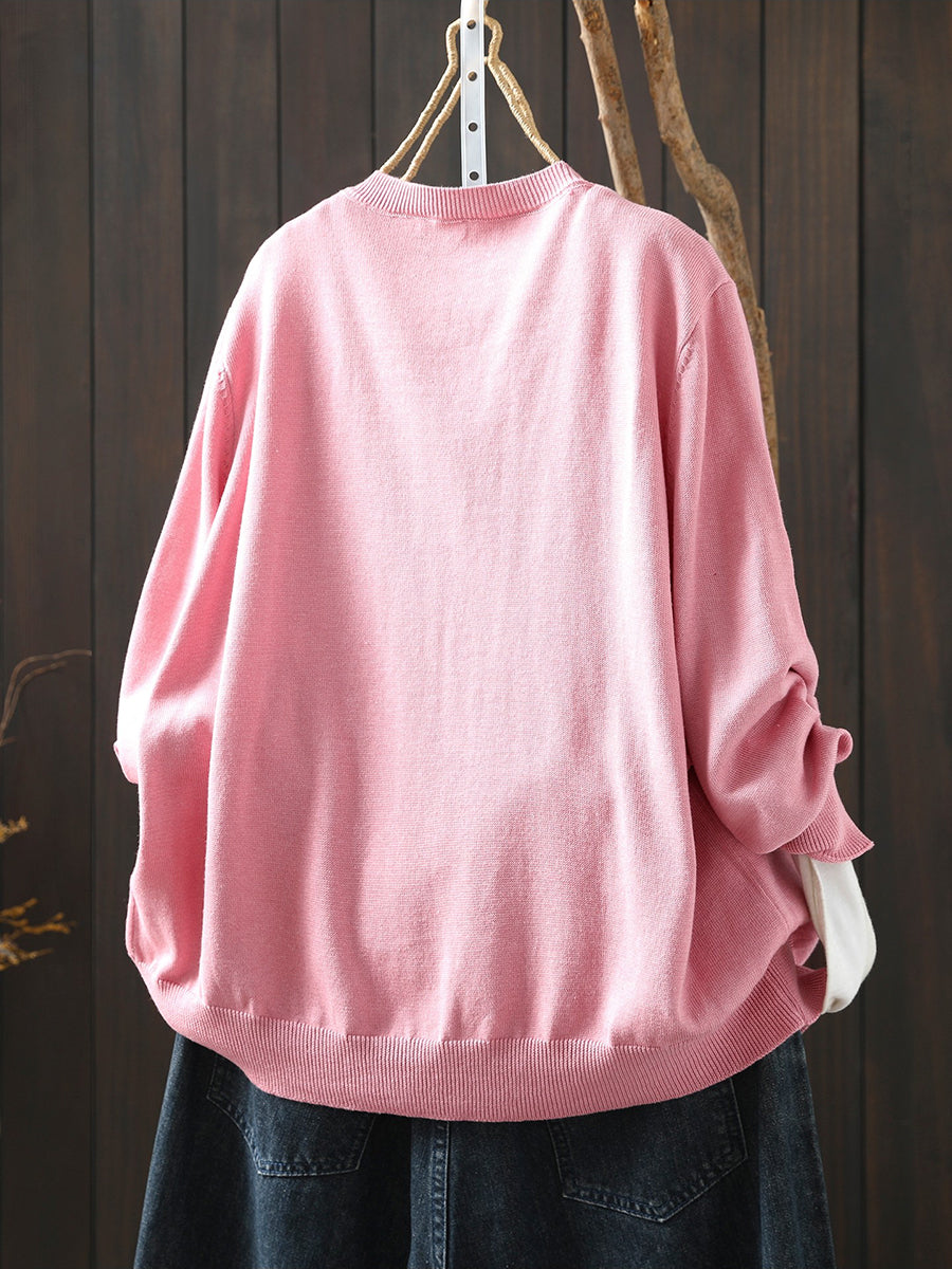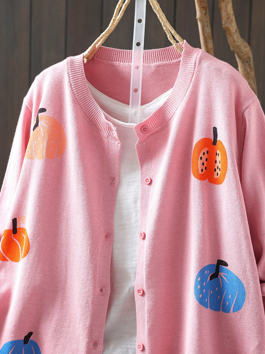 Künstlerischer Frühlingspullover mit Kürbismuster und Rundhalsausschnitt