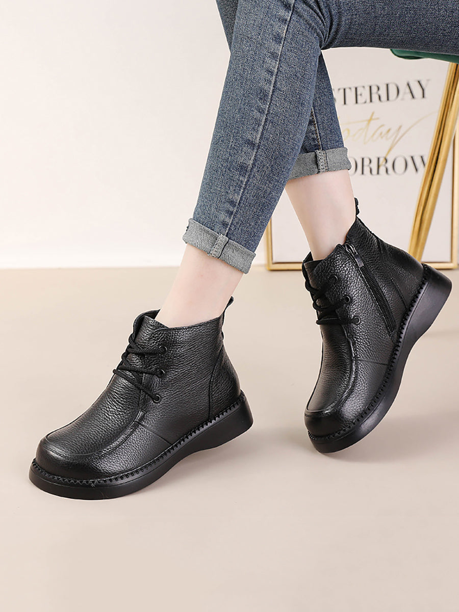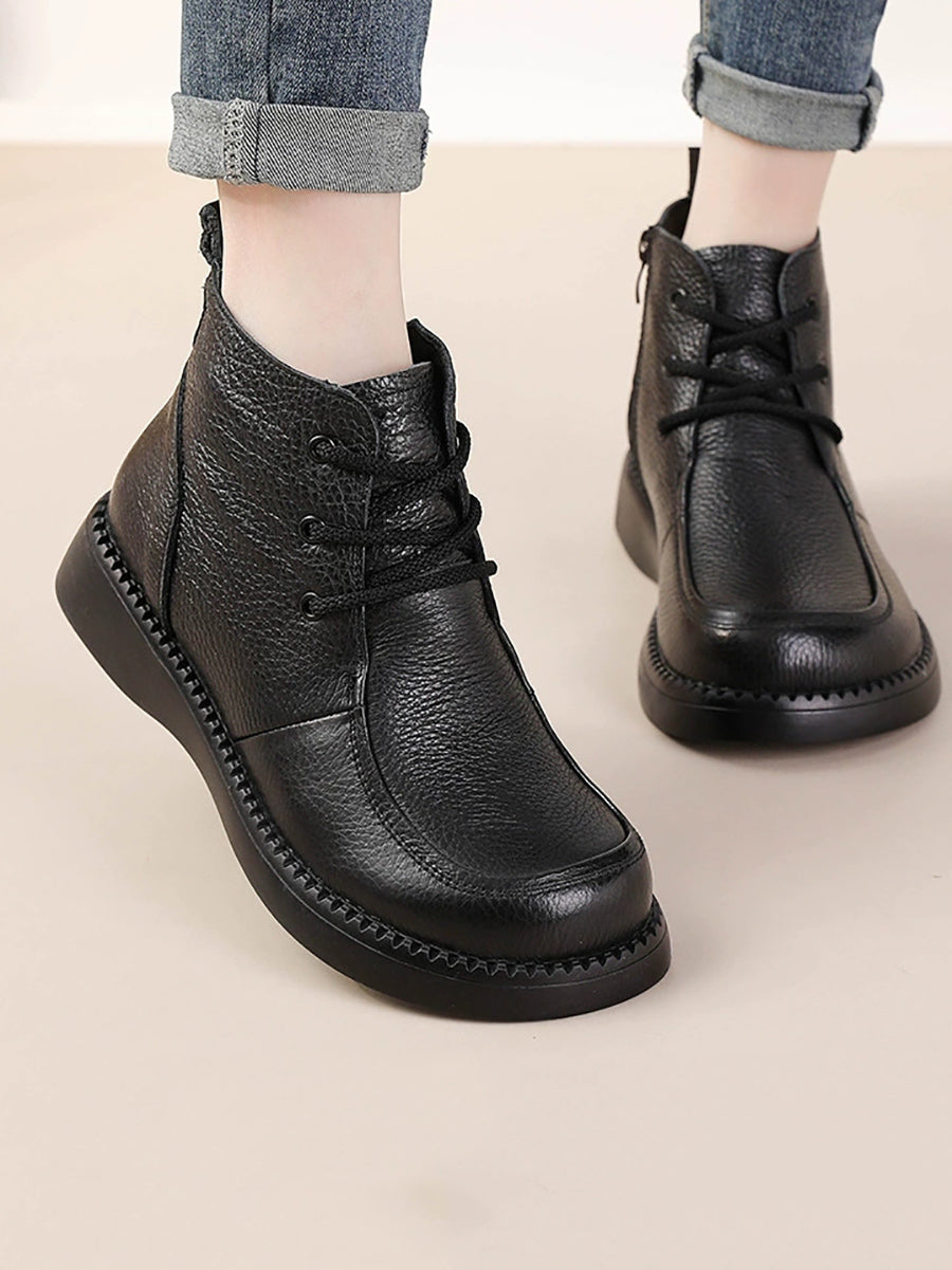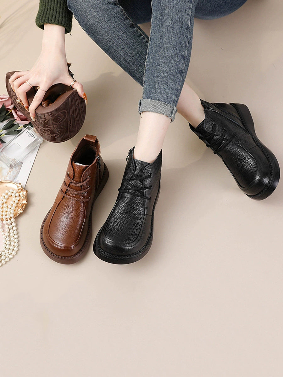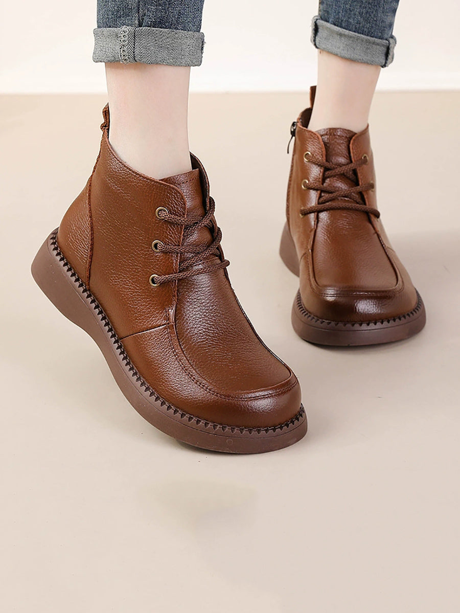Damen Winter Stiefeletten aus echtem Leder, gefüttert mit Fleece