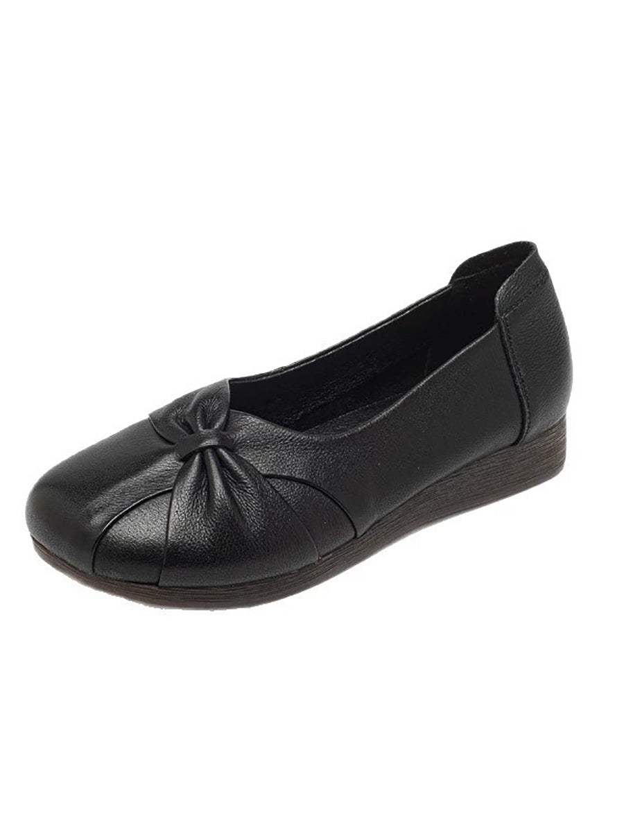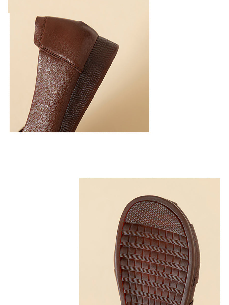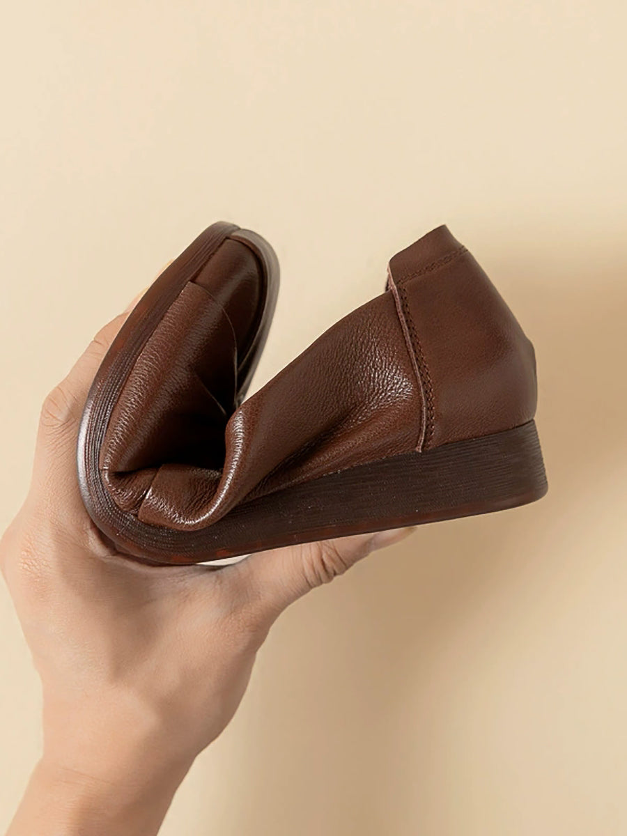 Damen-Freizeitschuhe aus einfarbigem Leder mit niedrigem Absatz