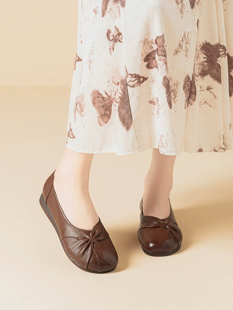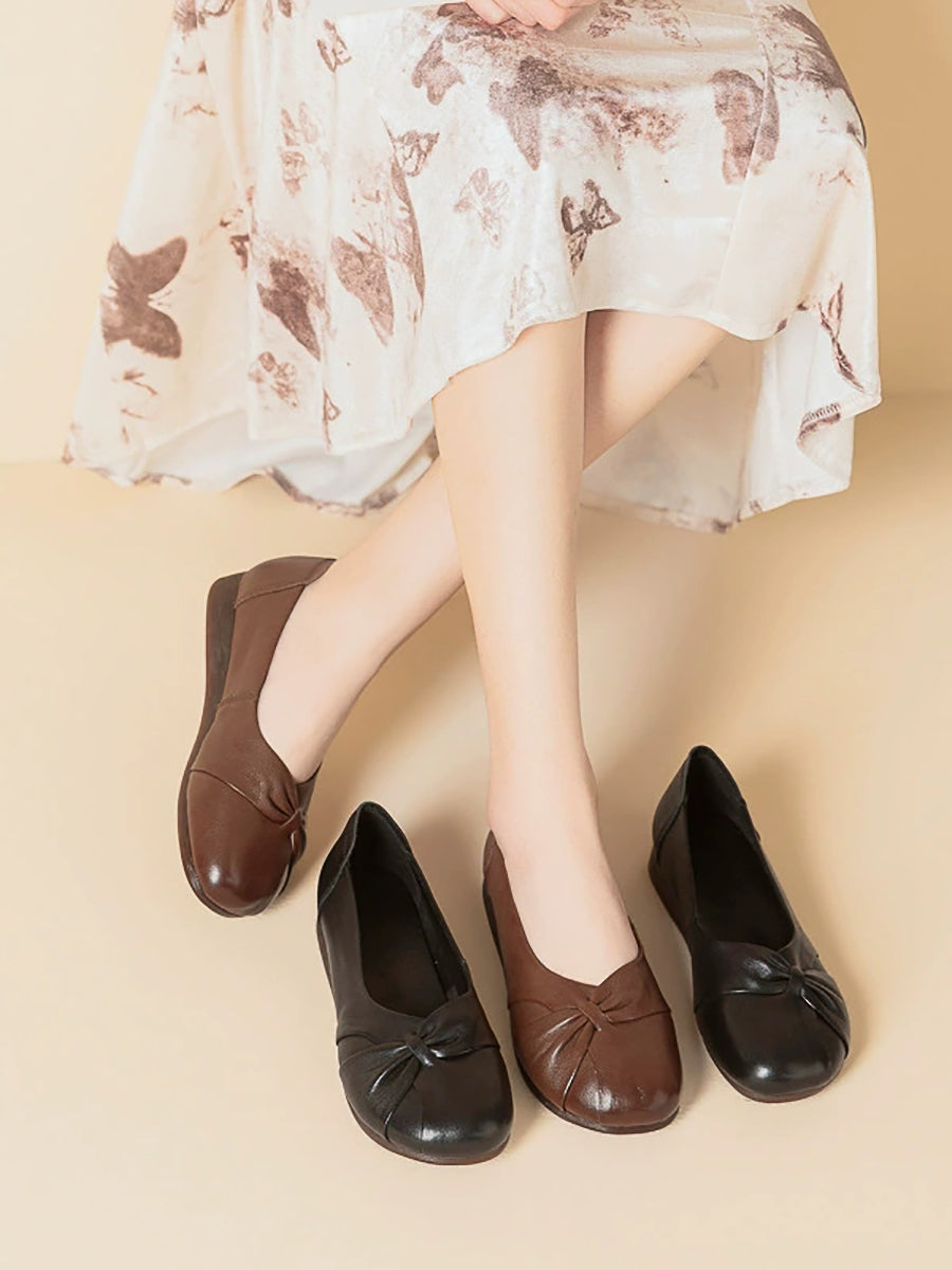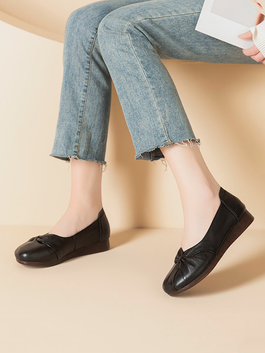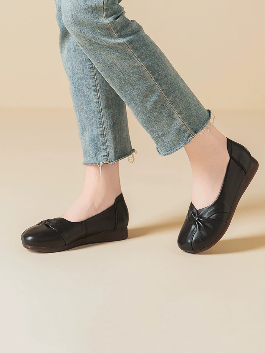 Damen-Freizeitschuhe aus einfarbigem Leder mit niedrigem Absatz