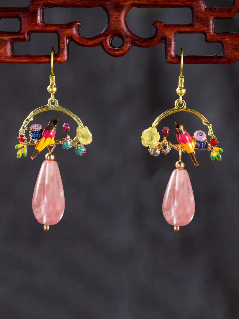 Vogel- und Blumen-Chalcedon-Anhänger-Ohrringe