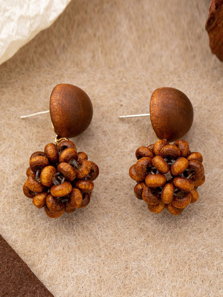 Damen Vintage Quadratische Holzperlen Blumenohrringe