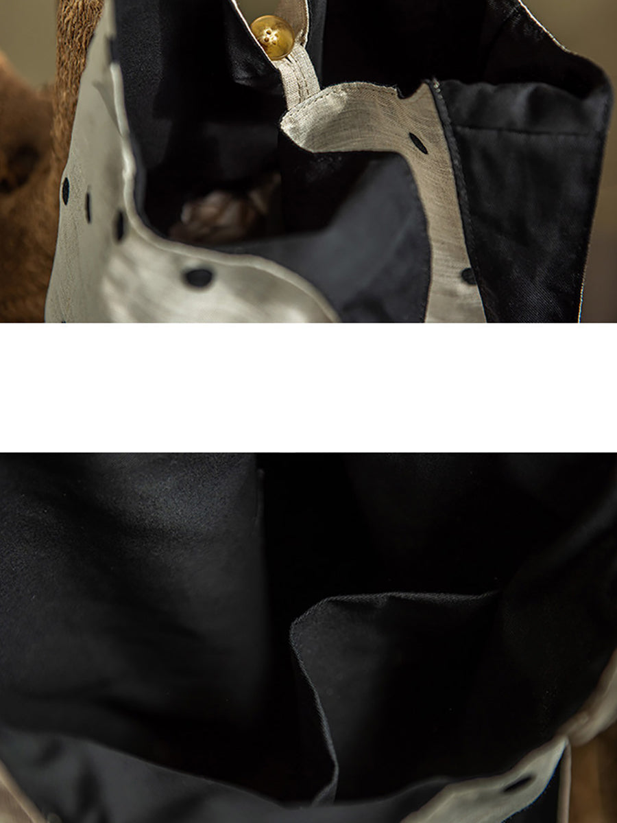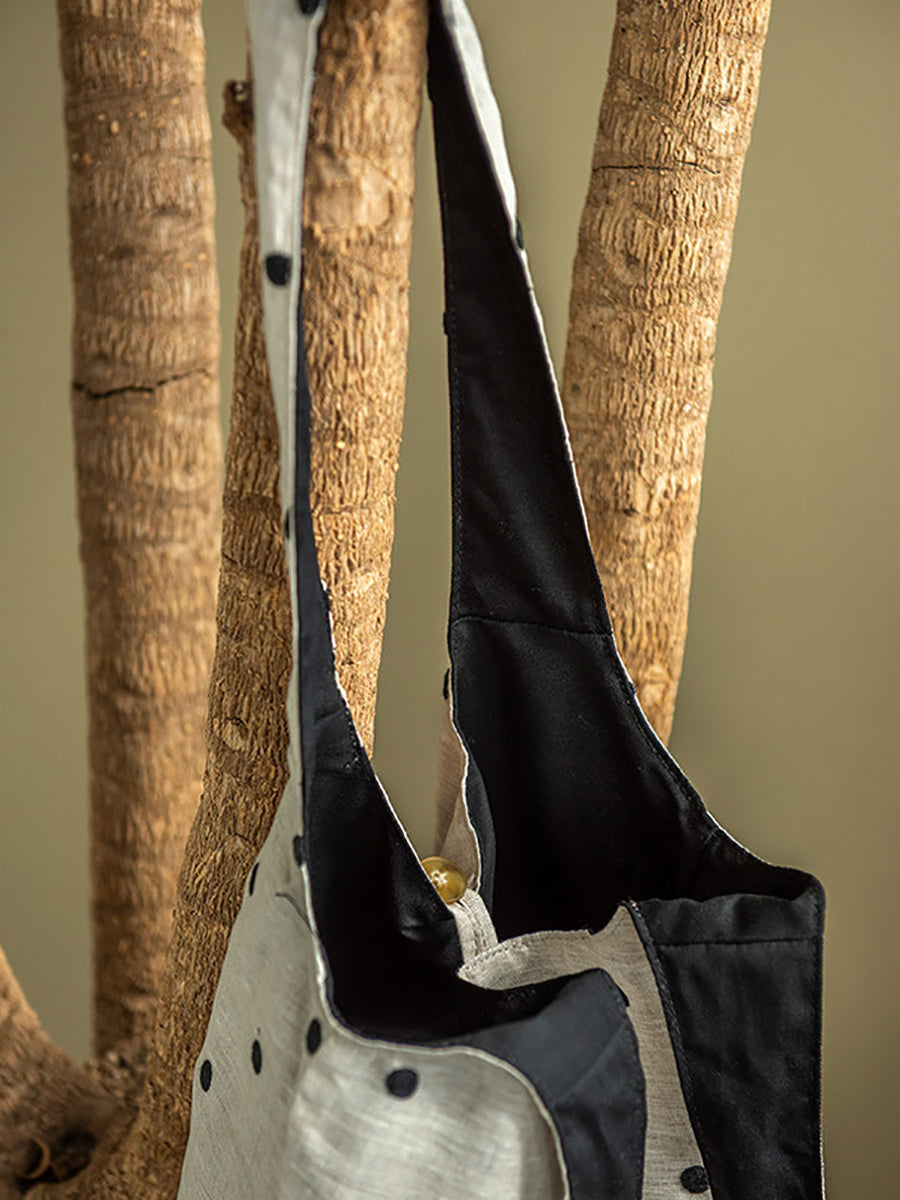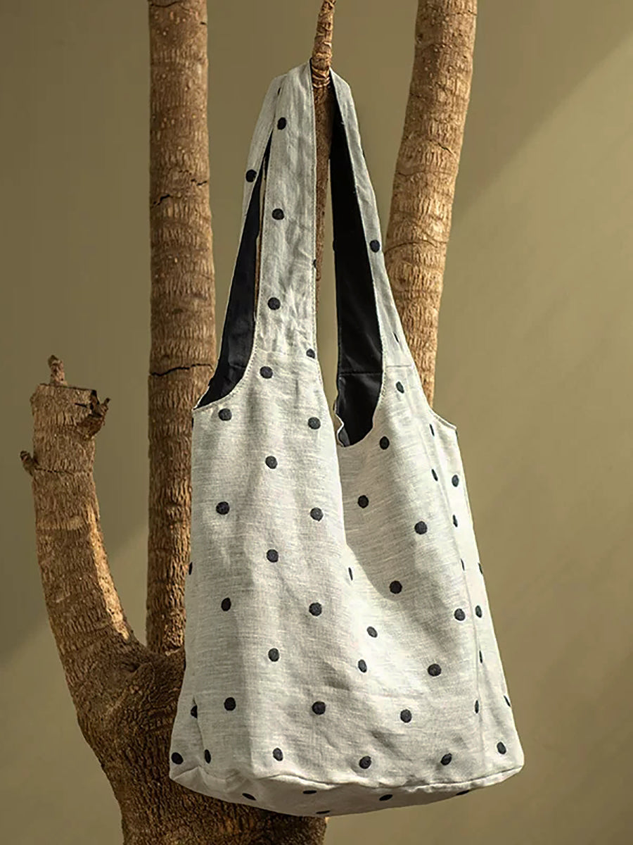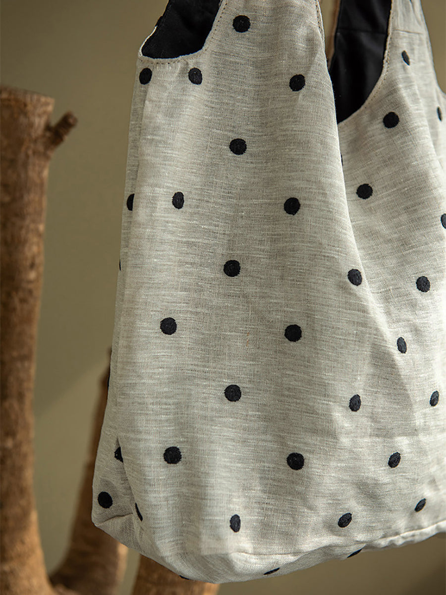 Künstlerische Leinen-Schultertasche mit Polka-Dots