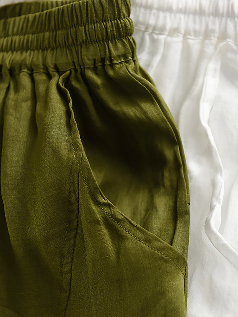 Damen Sommer Artsy Pure Color 100% Ramie Lose Pumphose